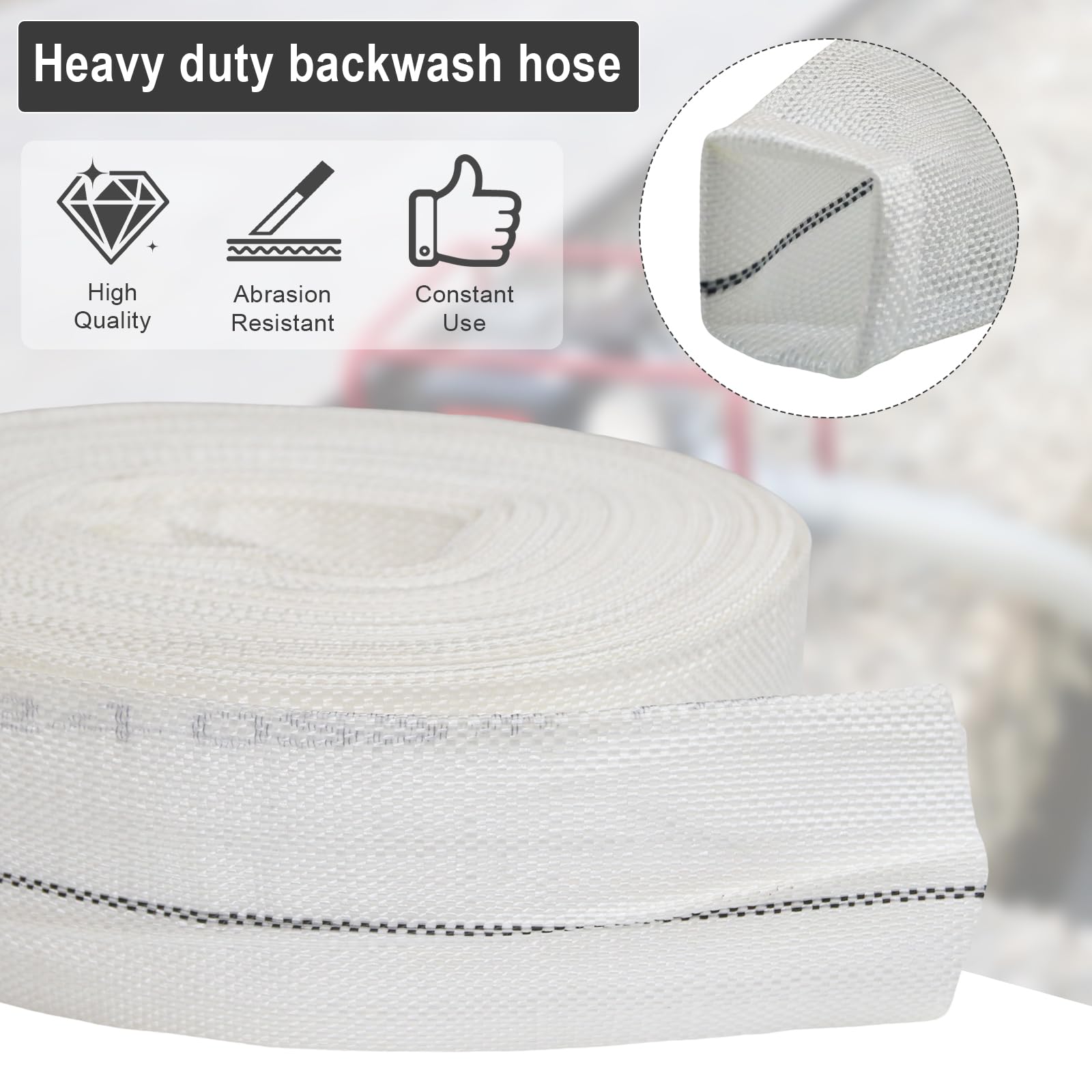 - Premium Material: 1.5‘’ x 100 ft.backwash hose is constructed of a durable polyurethane organic polymer that provides excellent leak and tear resistance. This rugged construction is superior to traditional PVC hose for greater durability.