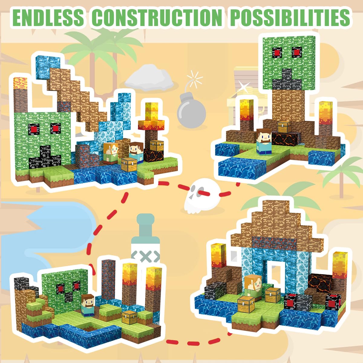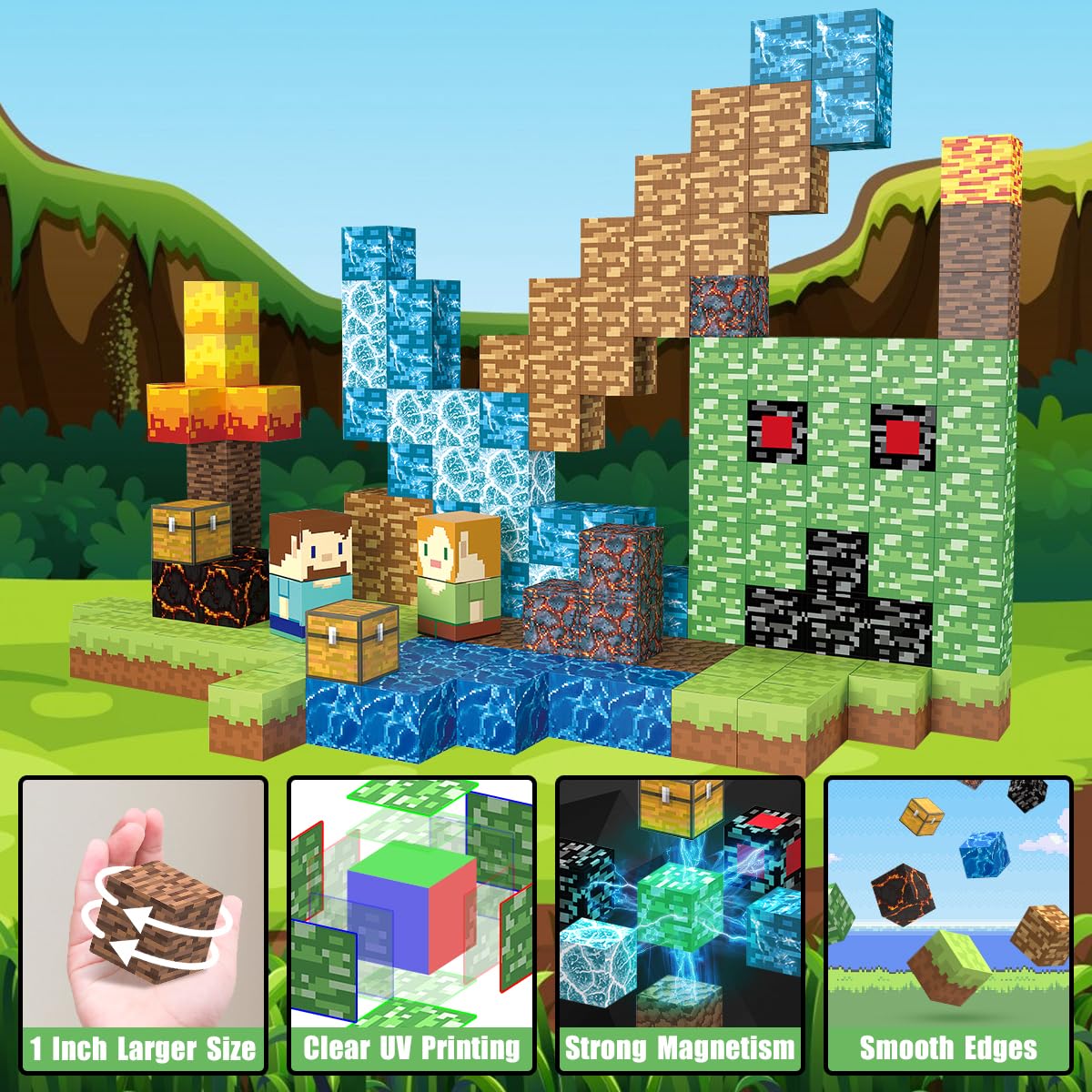 - 𝗖𝗼𝘂𝗻𝘁𝗹𝗲𝘀𝘀 𝗣𝗼𝘀𝘀𝗶𝗯𝗶𝗹𝗶𝘁𝗶𝗲𝘀: Each block has a secure magnetism connection, they provide firm support for both simple and intricate structures, allowing children to explore complex designs while developing fine motor skills and problem-solving abilities