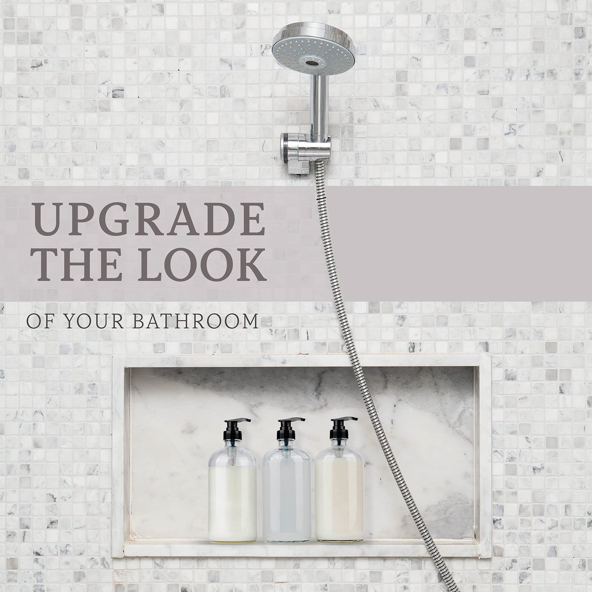 1 Liter (32 Ounce) Large Clear Glass Boston Round Bottles w/Black Pumps. Great for Lotions Soaps Oils Sauces - Food Safe and Medical Grade - by kitchentoolz (Pack of 4)