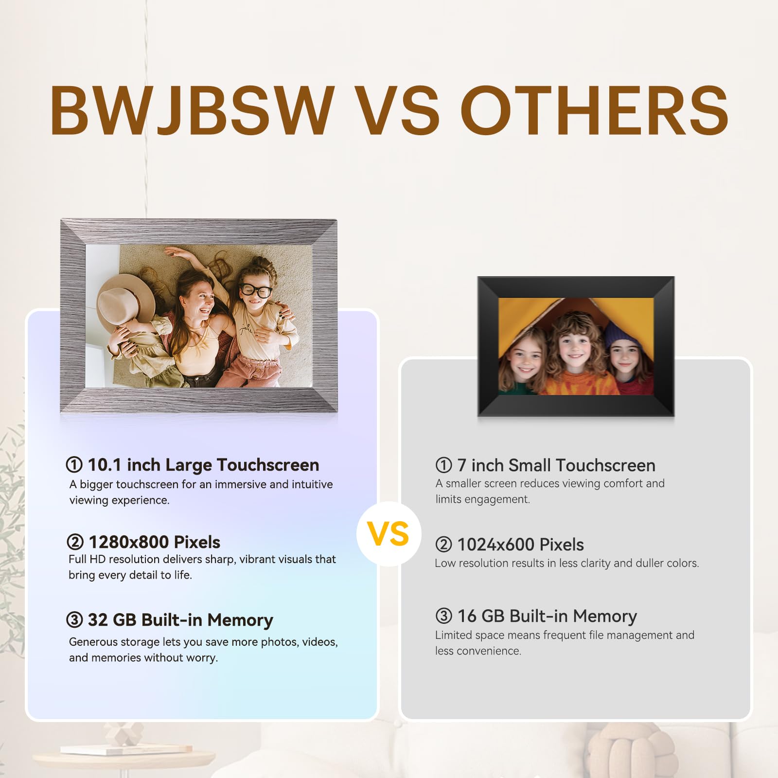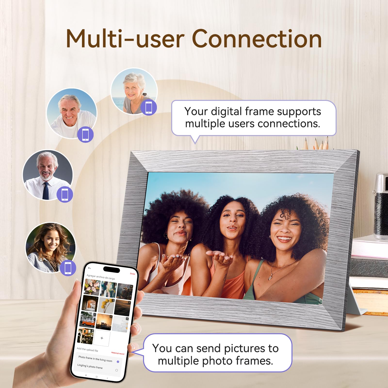 10.1 Inch Digital Picture Frame with 32GB Storage, WiFi Digital Photo Frame 1280x800 HD IPS Touchscreen, Easy Setup for Photo & Video Sharing via Free App