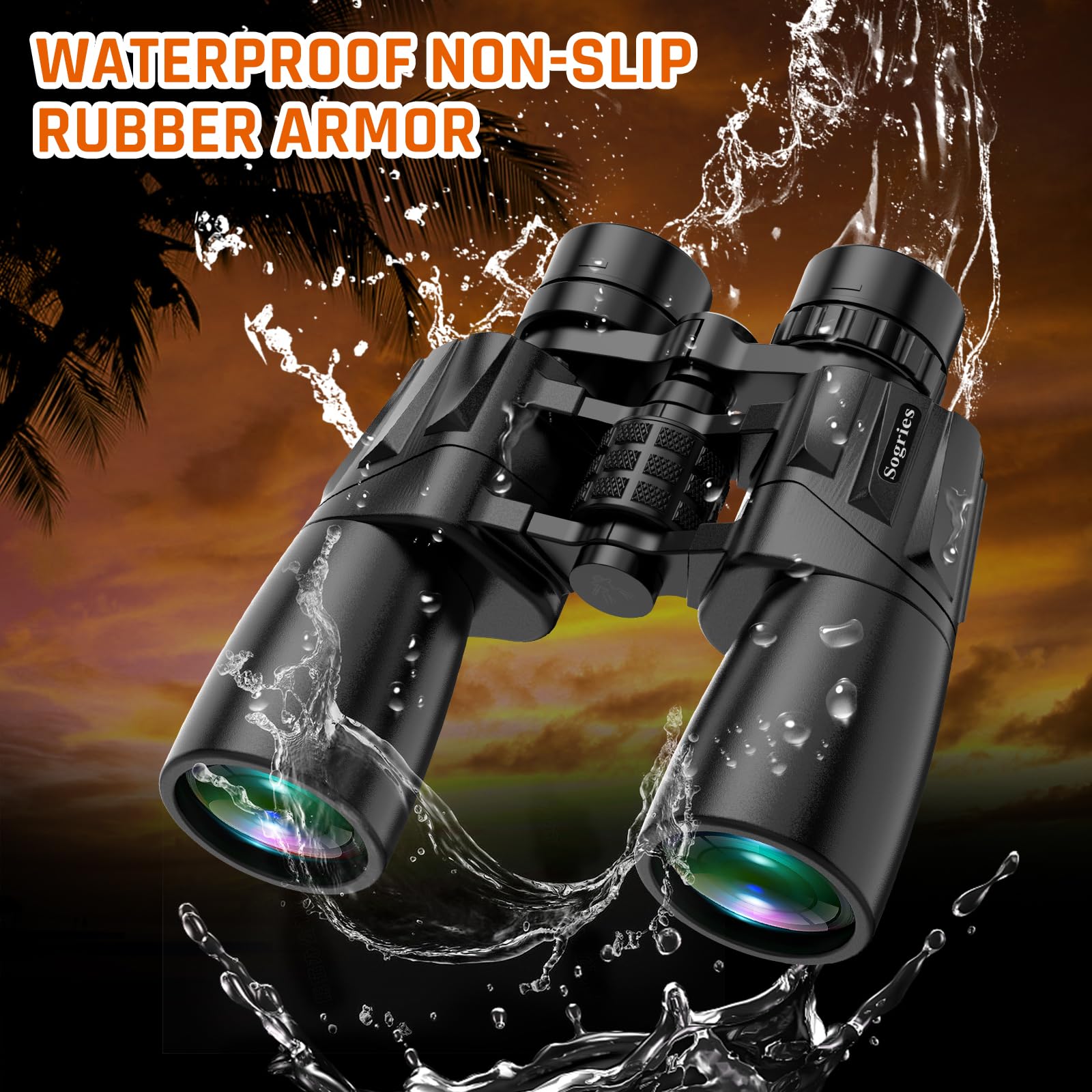 - Waterproof & Comfortable Grip--Our powerful zoom binoculars have an unscented rubber armour coating, a non-slip fingerprint construction, and a safe and comfortable grip surface. O-ring sealed lenses with anti-fog coating keep moisture, dust, and other debris out of the binoculars' interior, making them waterproof, shock-resistant, long-lasting, and easy to hold.