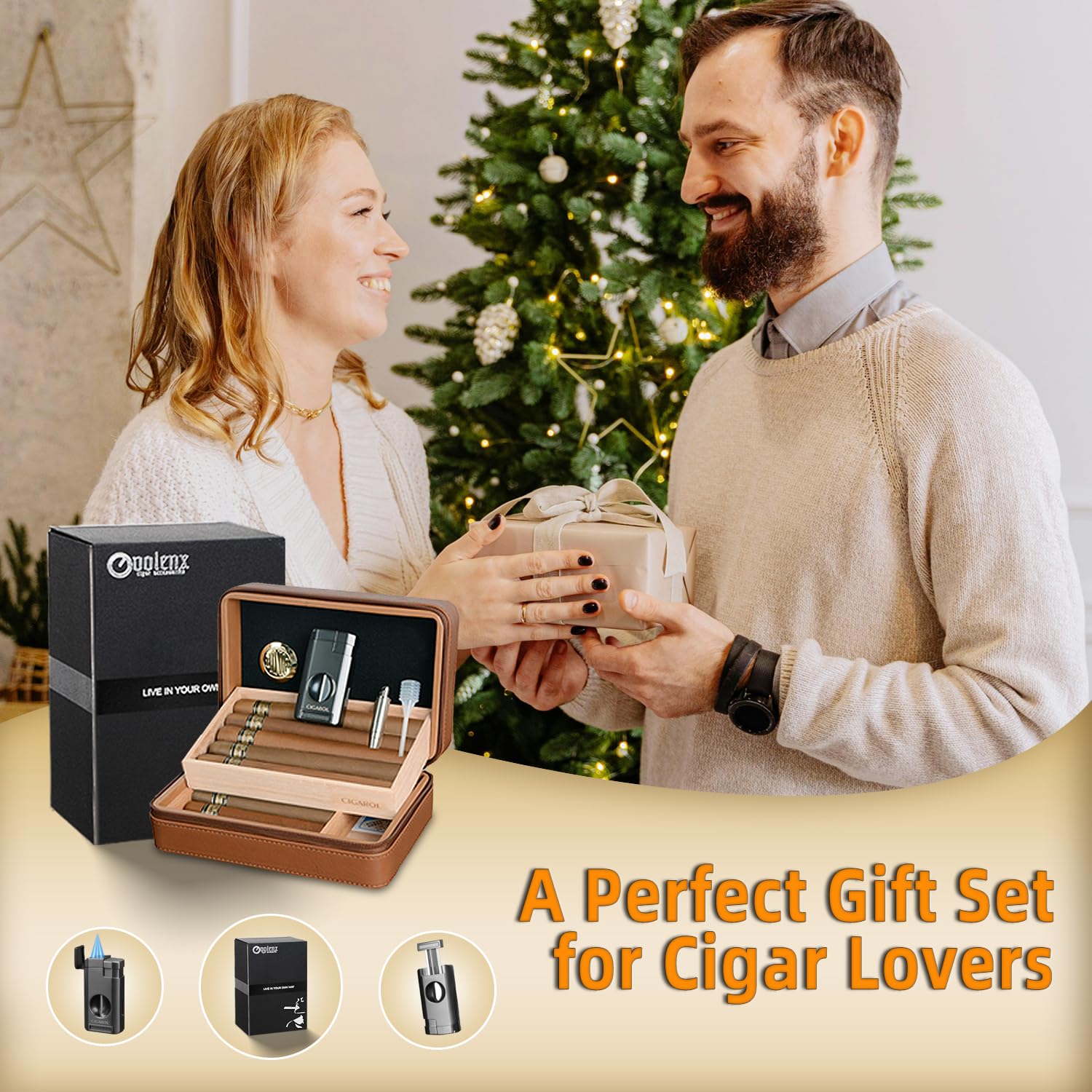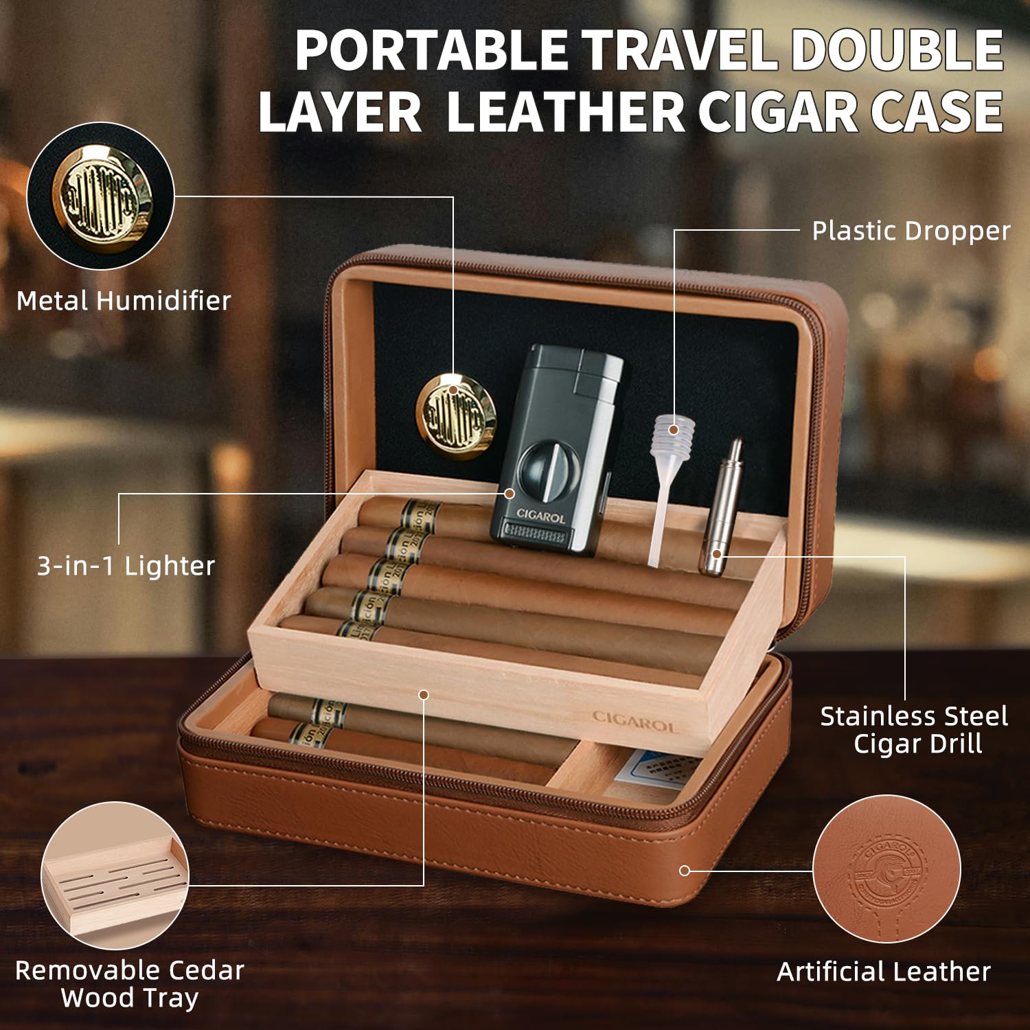 - Munltifunctional Cigar Humidor: You will get 1* cigar case, 1* cigar punch, 1*triple flame cigar lighter, 1*dropper, 1*humidifier. Our cigar box for men is the perfect birthday, anniversary, or Christmas gift for any cigar aficionado in your life.