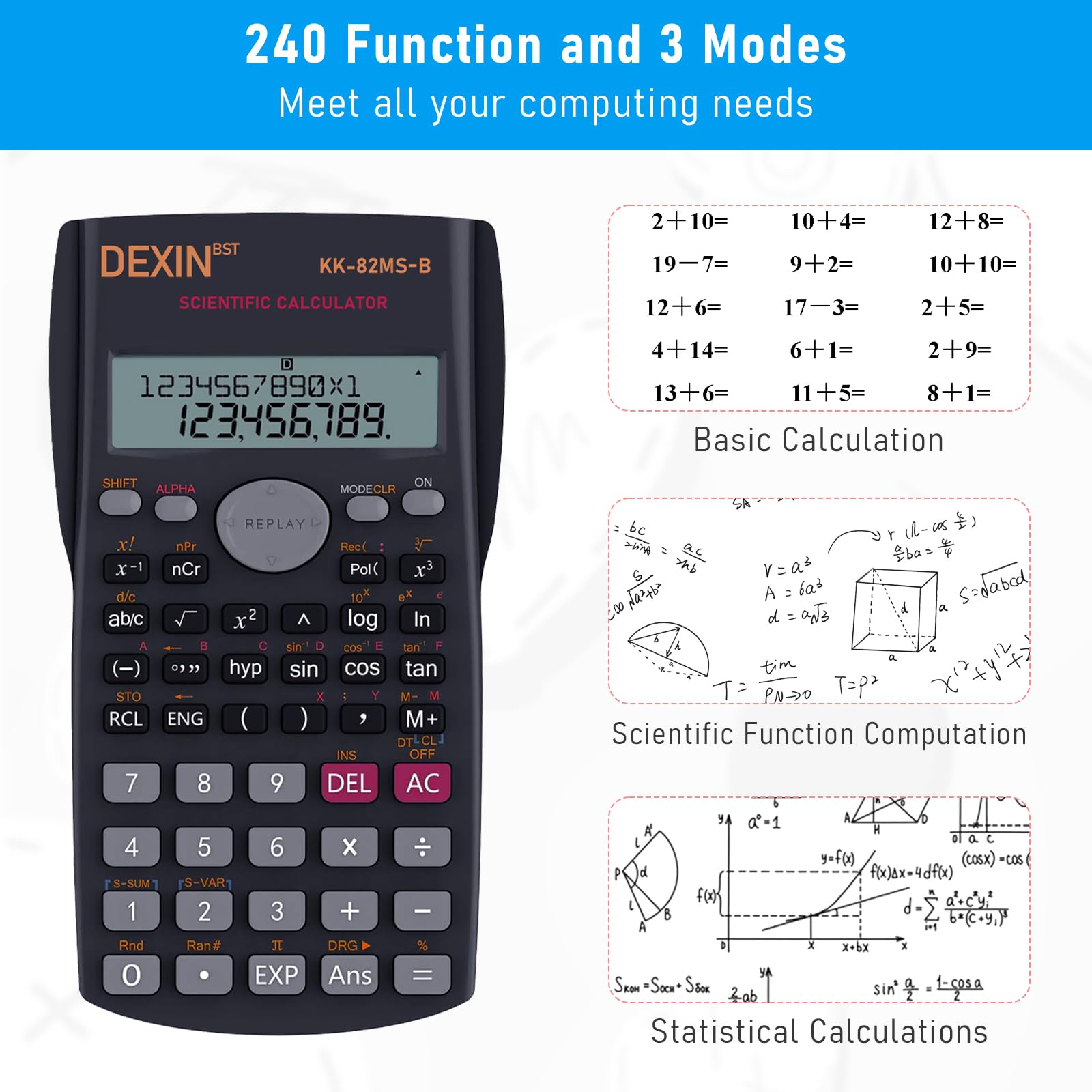 - Sufficient Quantity: you will receive 10 packs of calculators for school, enough to meet the needs of some high school and university level courses, including pre algebra and algebra I/II, grade scientific calculator with 240 scientific functions; This scientific calculator is suitable for many occasions, such as business offices, homes, schools, banks, etc.; You can use it to help you deal with basic budgets, personal financial management or calculation tasks and more