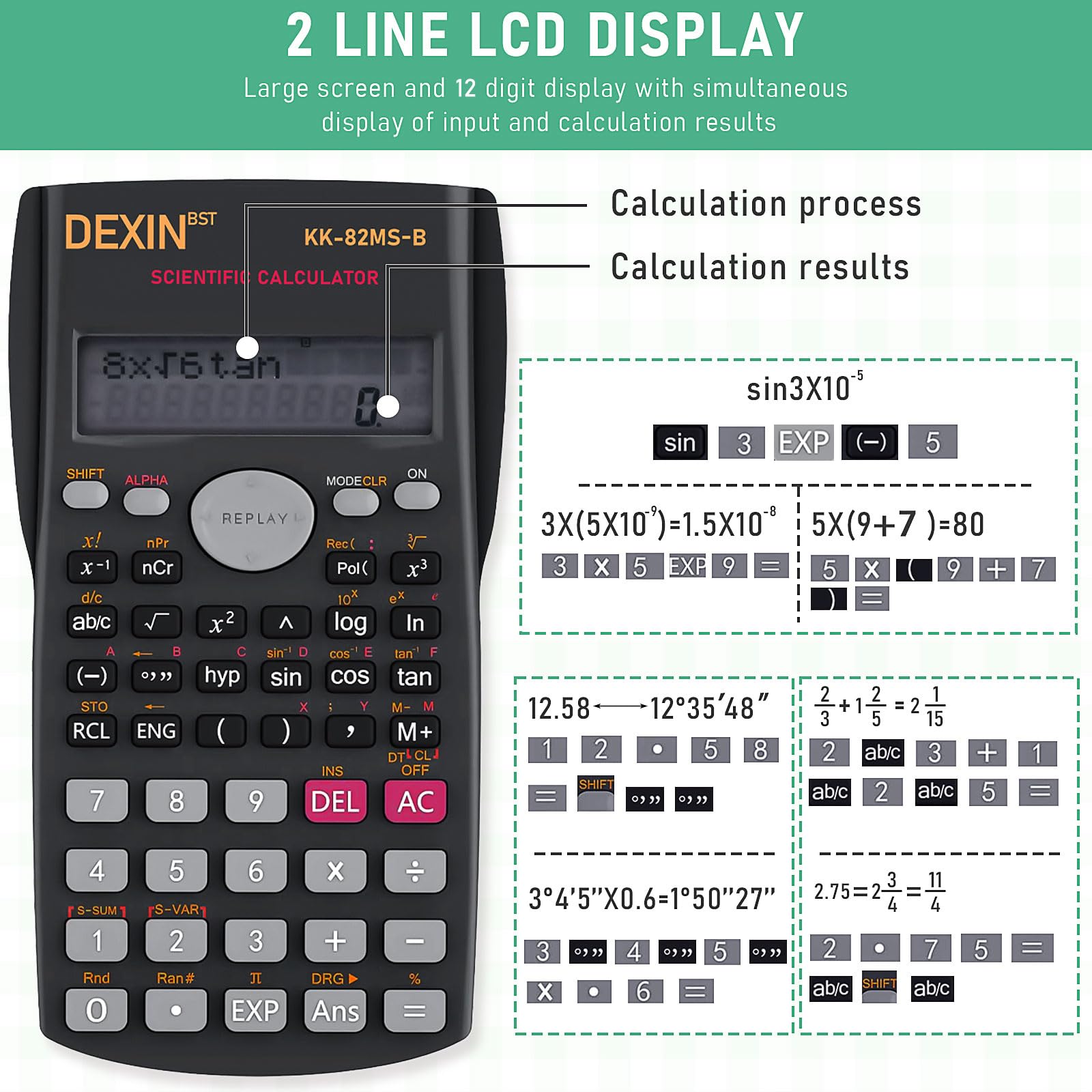 - Calculation Memory Function: the science calculator for office is with buttons which can be reapplied, which can display your work and previous results, and will reduce double counting and improve working efficiency, you will never have to worry about recalculating difficult problems