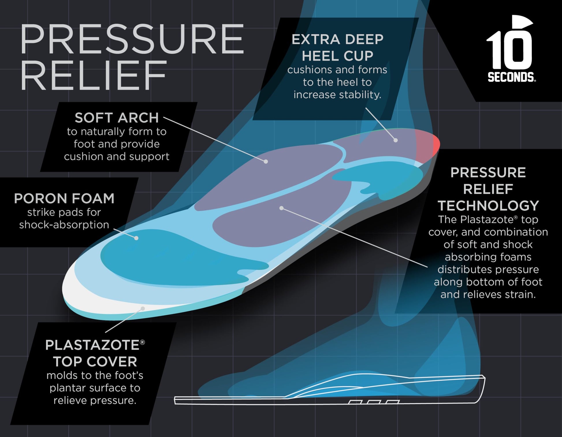 - Why: The 10 Seconds Pressure Relief Metatarsal Pad Insole was designed to provide relief from common foot ailments like Plantar Fasiatis, Mortons Nuroma and diabetic sufferers while providing the comfiest foot cushion we offer.