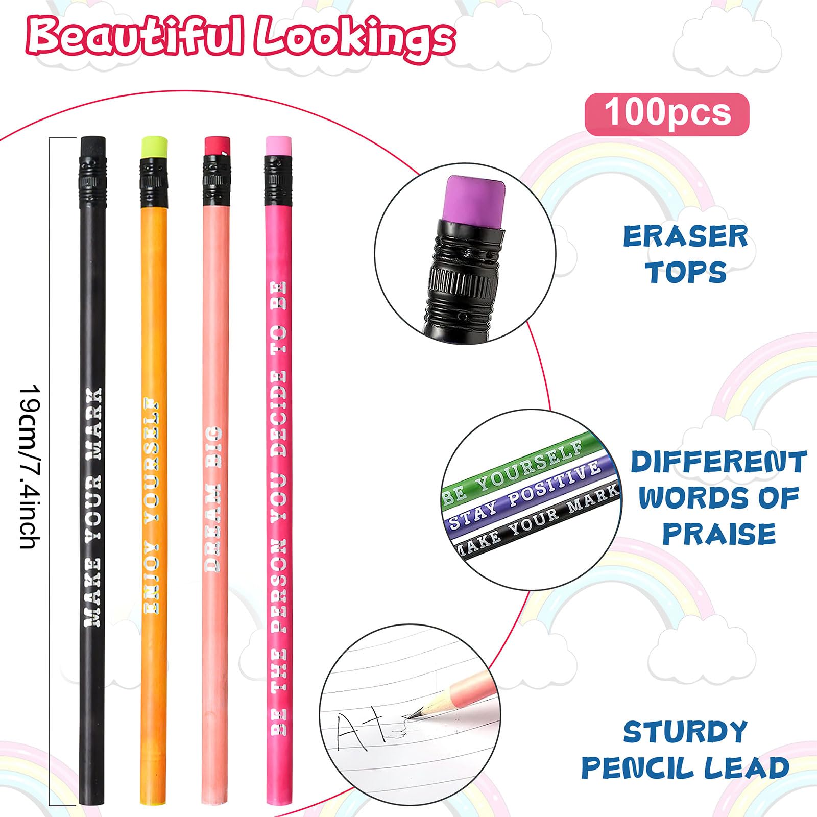 - Ample Quantity to Meet Your Needs: you will receive 100 pieces of color changing inspirational pencils that can with a total of 8 inspirational characters; A large quantity and a variety of styles, each color changing pencil comes with a different color eraser, enough to meet your daily writing and drawing needs for a long term use