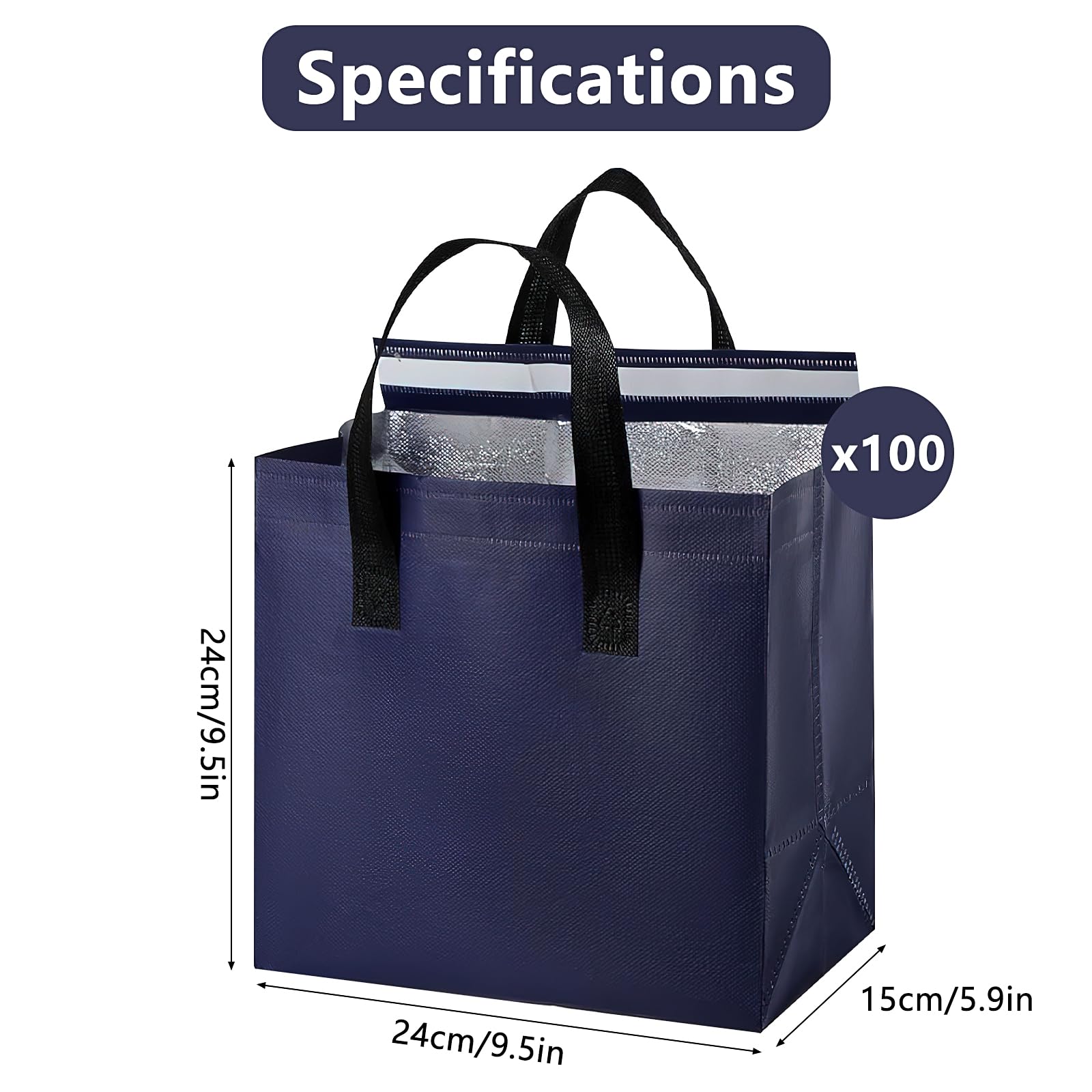 - Package Includes -- You will get 100 pieces of insulated take away bags, providing ample supply for restaurants, food delivery services, food truck, catering businesses, or any food provider handling multiple orders per day