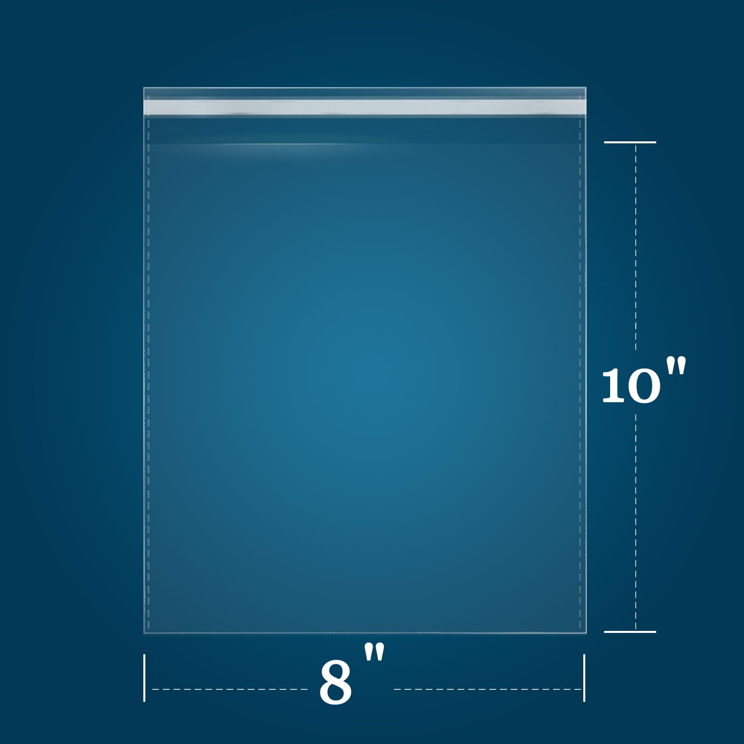 - SPECIFICATION: 1000 Count 8" x 10" (20.32x25.4 cm)Usable Dimension (Excludes Glue Flap). 1.6 Mil Thick Cellophane Bags.With knurling edges