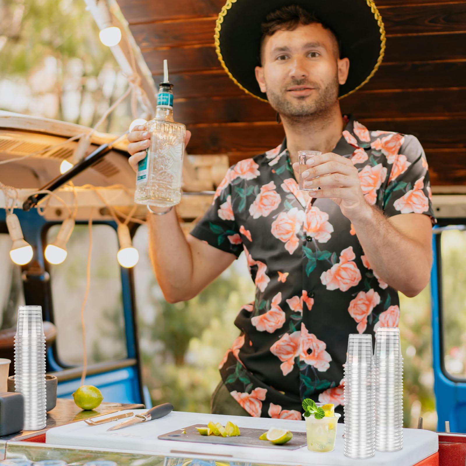 - Clear and Compact Design: These plastic shot glasses 1oz are made of crystal clear plastic and display drinks well, presenting different visual effects and adding to the energy and atmosphere of the party.The 1 ounce size is perfect for holding samples of mini-drinks, potions or snacks
