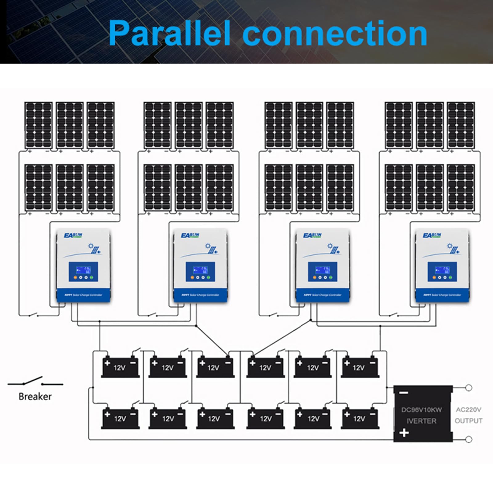 - 𝐁𝐀𝐓𝐓𝐄𝐑𝐘 𝐂𝐎𝐌𝐏𝐀𝐓𝐈𝐁𝐈𝐋𝐈𝐓𝐘 100A solar controller is compatible with 12V, 24V, 36V, and 48V photovoltaic systems, and can automatically identify the system voltage, with a maximum charging current of up to 100A; supports a variety of lead-acid batteries, including flooded, AGM, GEL, lithium-ion battery; supports Modbus protocol communication.