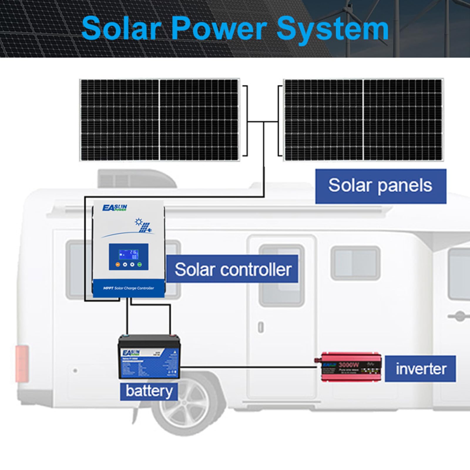 - 𝐇𝐈𝐆𝐇 𝐄𝐅𝐅𝐈𝐂𝐈𝐄𝐍𝐂𝐘 The solar controller adopts the latest optimized MPPT technology, which can quickly track the maximum power point of the photovoltaic array in any environment and obtain the maximum energy of the solar panel in real time. The photovoltaic utilization rate is ≥99% and the maximum efficiency is ≥98.1%. Can be used in a wide range of applications, such as solar RVs, solar household systems, etc.
