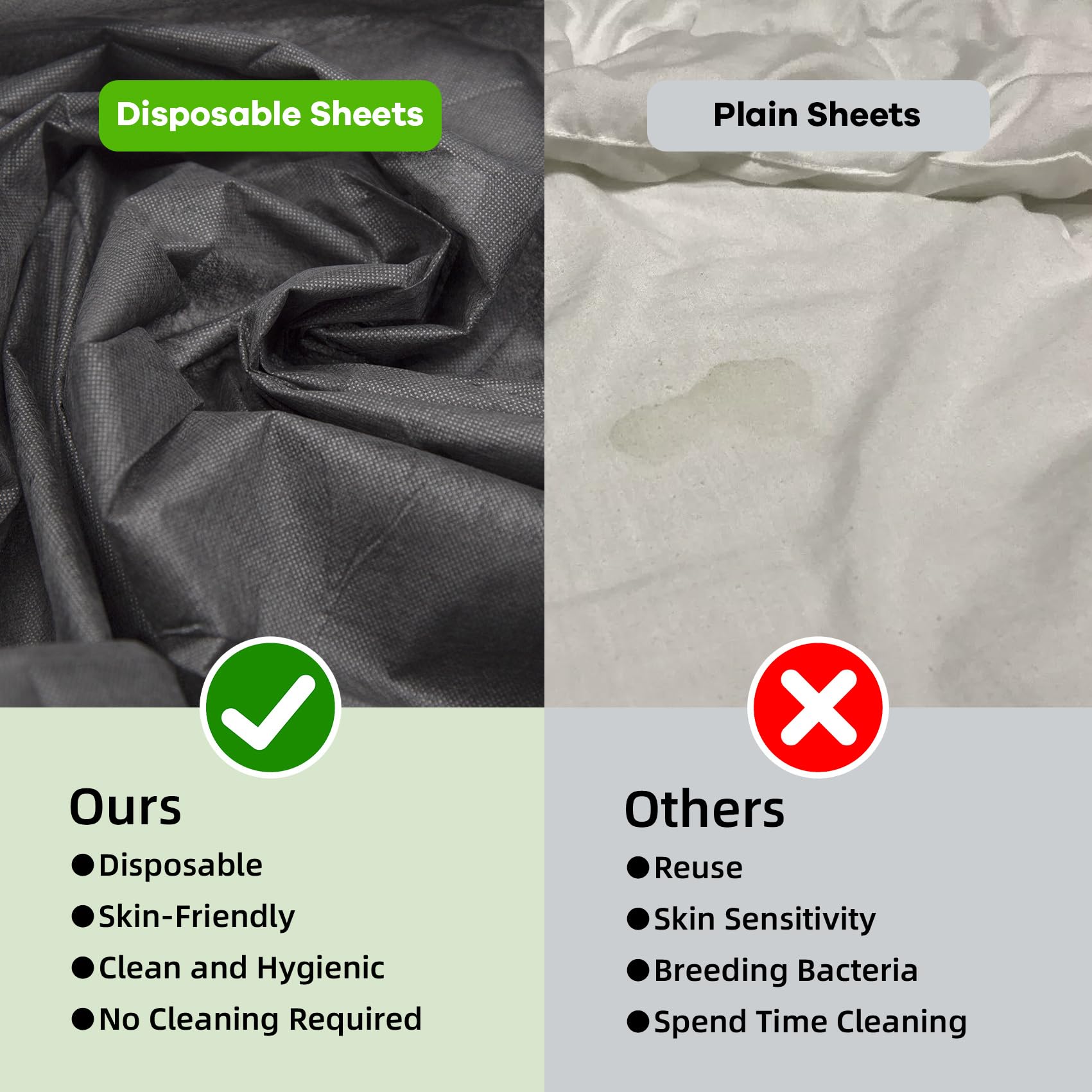 - 【 Reliable and Comfortable 】 Disposable bed sheets provide a clean protective layer between you and the sheets. Sweat-absorbent and non-sticky, sturdy and tear-resistant. When your customers lie on it, they can roll over freely