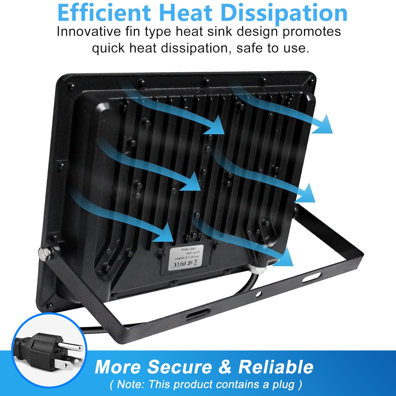 - Efficient Heat Dissipation: LED outdoor flood light is made of heavy-duty die-cast aluminum and features a fin-type heat sink design for rapid heat dissipation, which can extend the LED life to 30,000 hours and reduce the frequency of replacing the lights
