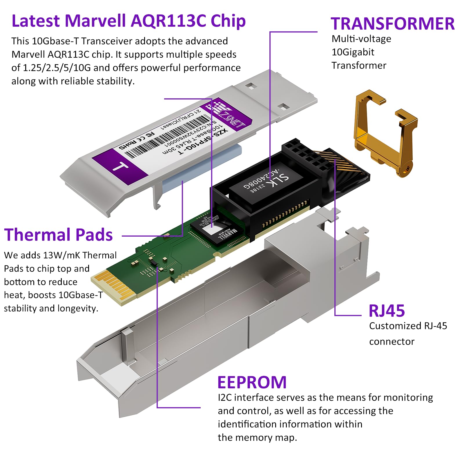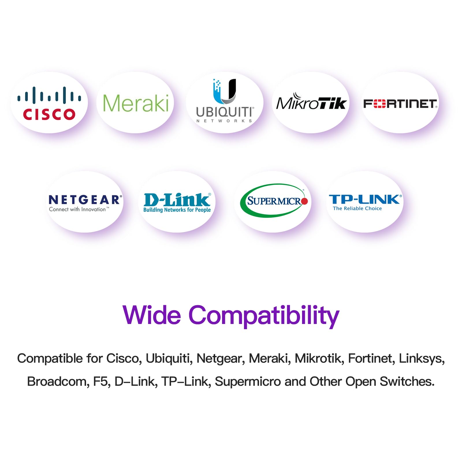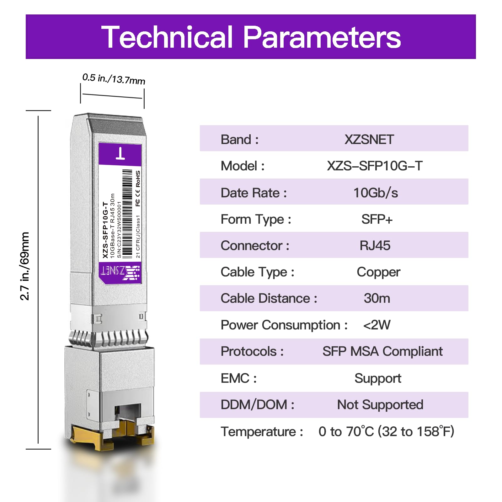 - Wide Compatibility: Compatible for Cisco SFP-10G-T-S, Ubiquiti UniFi UF-RJ45-10G, Meraki MA-SFP-10GB-T, Mikrotik S+RJ10, Netgear AXM765, Broadcom, D-Link, Supermicro and Other Open SFP Transceivers/Switches (NOTE: Not compatible for HP/HPE switches).