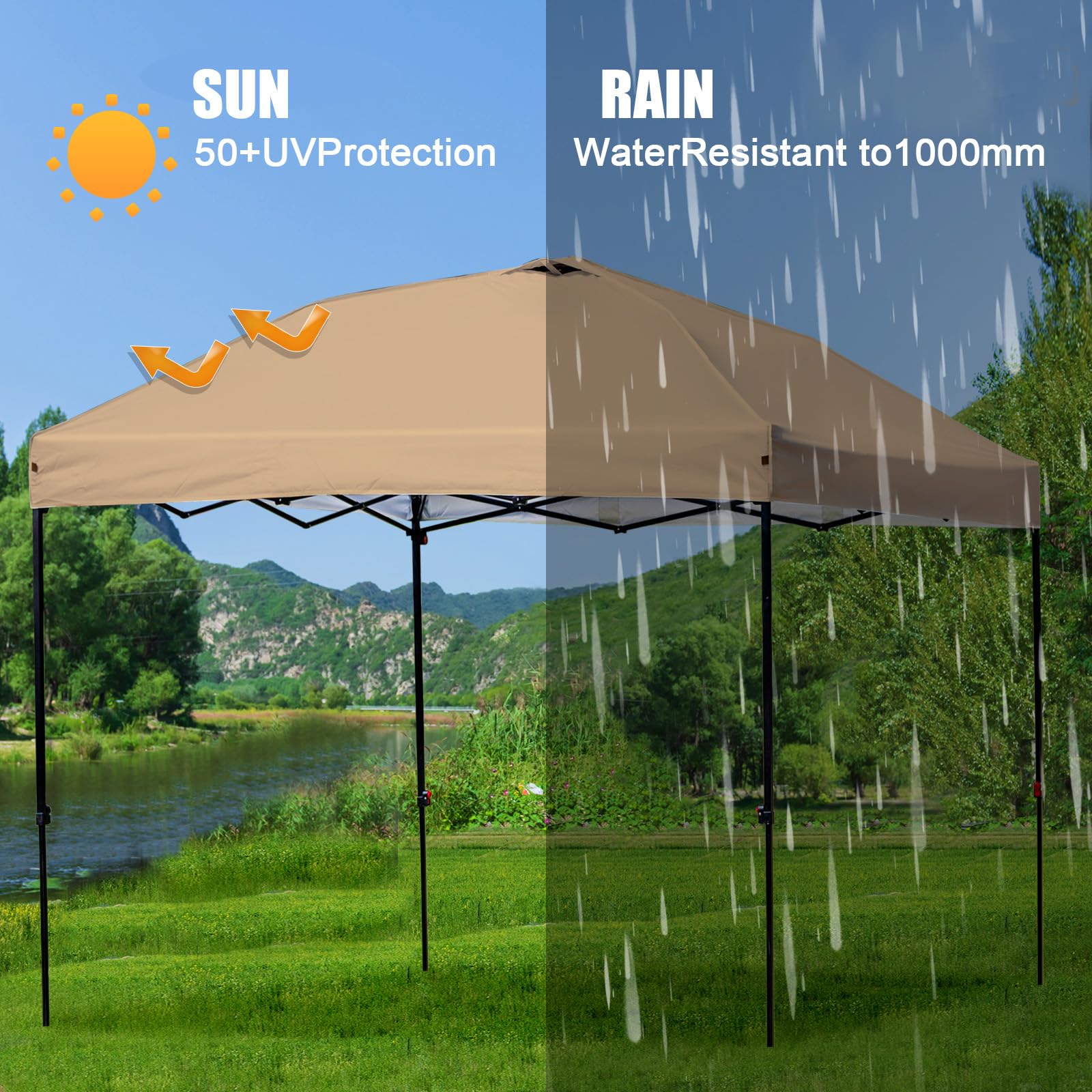 - 【Uv Resistant & Water-Resistant】 Made from high-density Oxford fabric with PVC coating, our canopy tent top offers reliable UV protection and water resistance. It helps shield you from the sun and keeps you dry in various weather. Durable and versatile, it’s perfect for camping, picnics, and outdoor events.