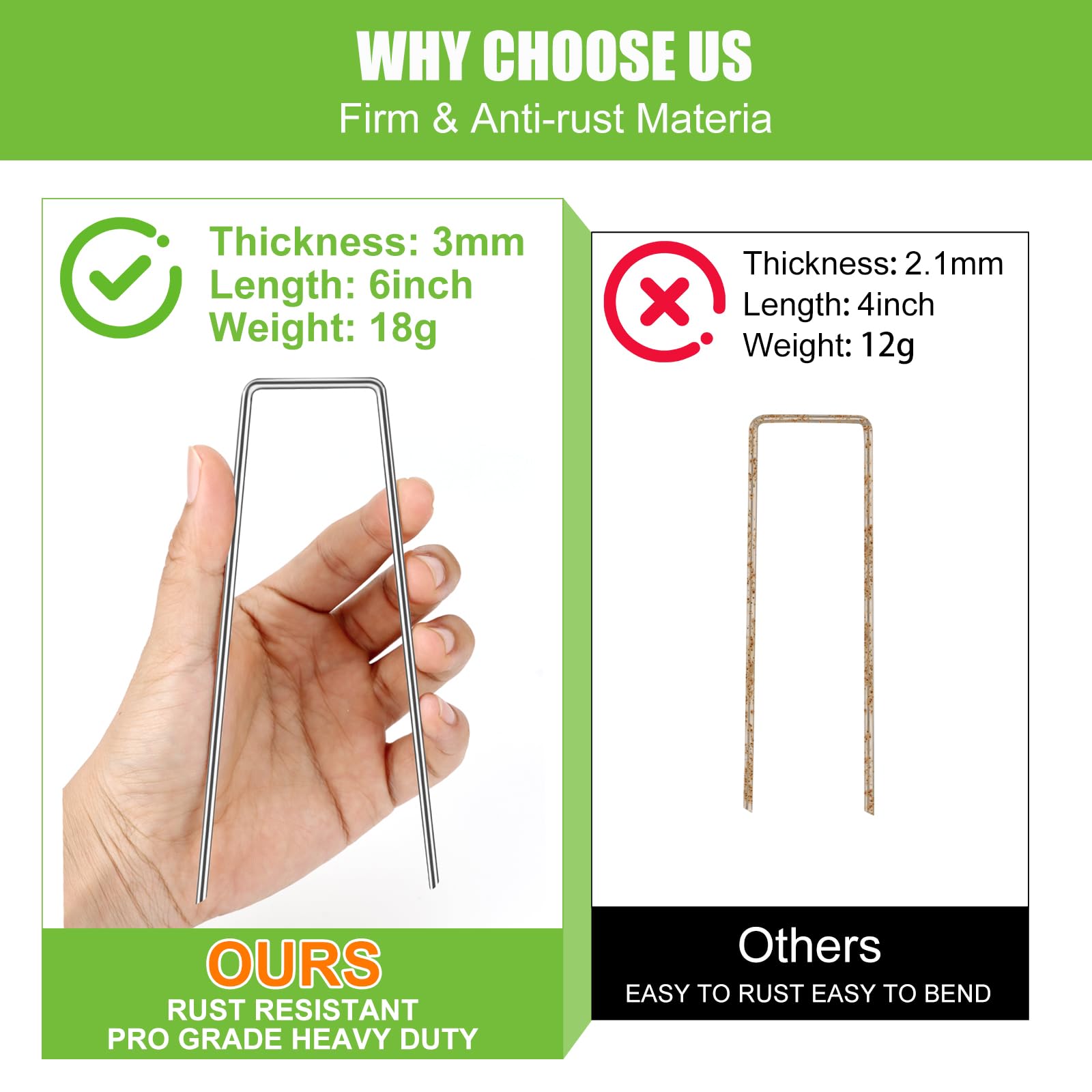 - 【CAN BE REUSED】- Made of stainless steel with galvanized anti-rust treatment to manufacture these garden pegs. Sturdy, rust resistant, also can be reused.