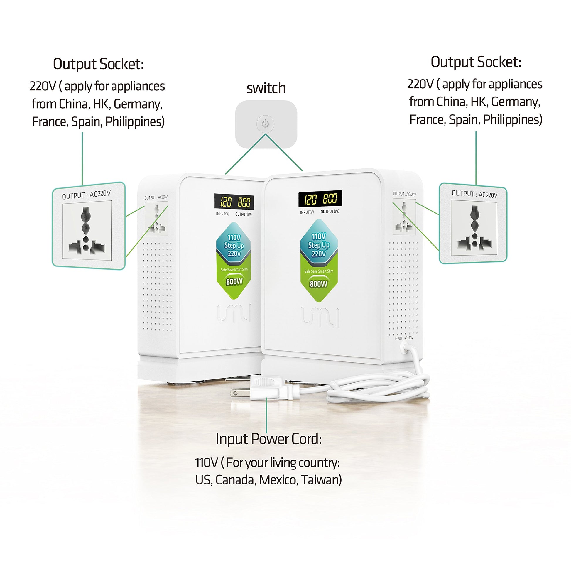 110 to 220 Voltage Converter Step UP only 800W for Euro and Asia Appliance with 220-240V Rated to be Used in US