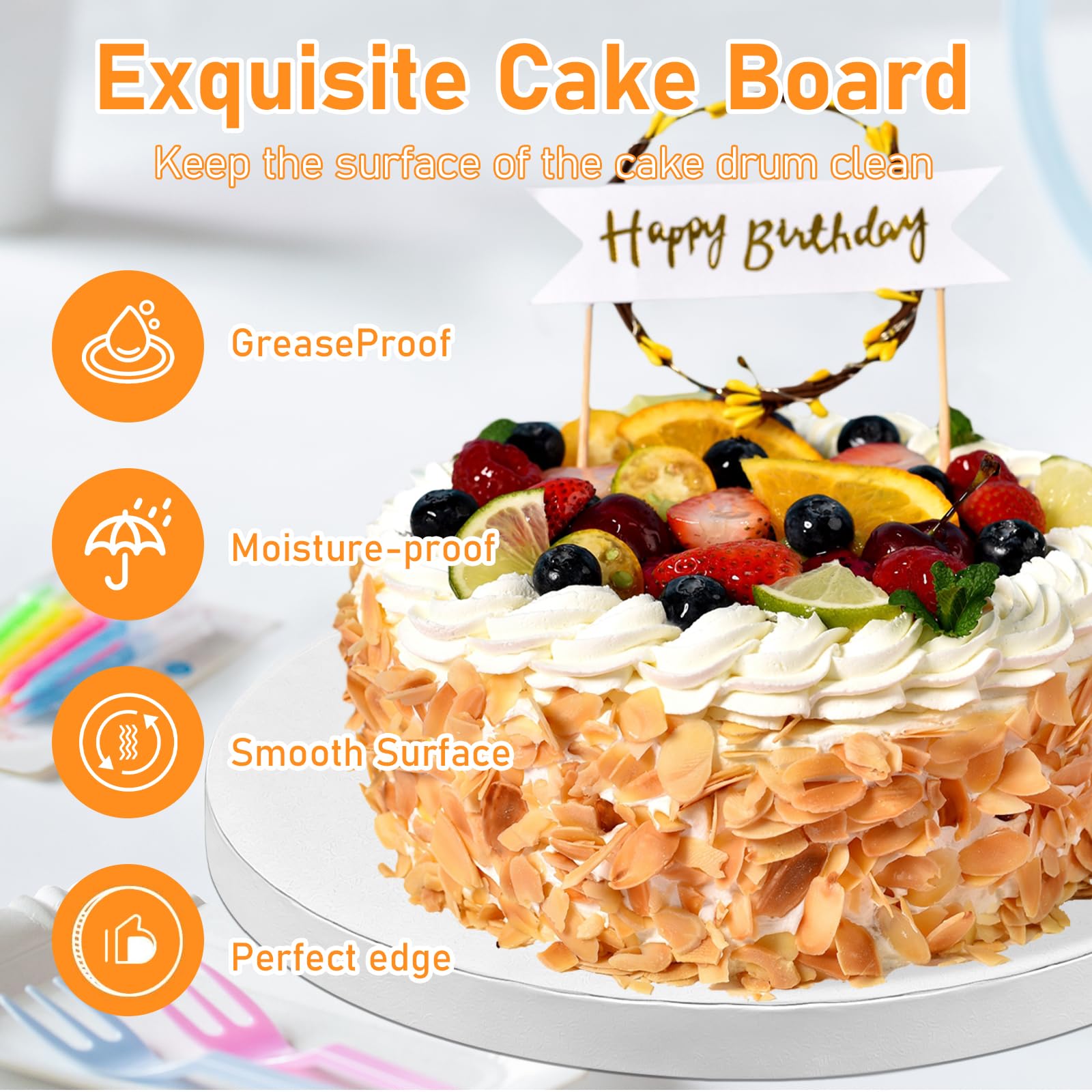 - Grease Proof Design:Having a greaseproof cake drum is important if you want a sturdy base for your delicious cake. The cake drums 12 inch round have a laminated layer that prevents the circle board from absorbing grease and water, so you can make cream, chocolate, fruit or similar frostings and fillings with confidence.