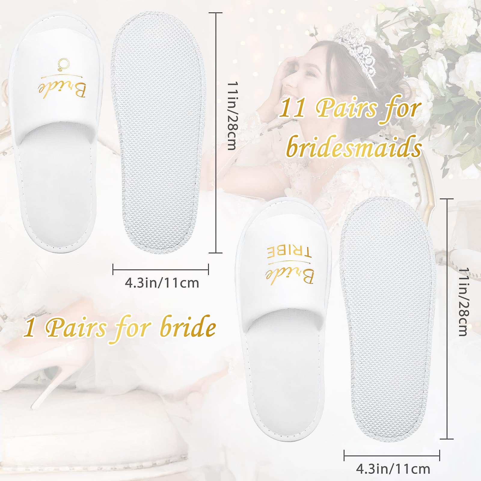 - Ideal Combination: You will receive 12 pairs wedding slippers, including 1 pair printed with bride and 11 pairs printed with bridesmaid. Enough quantity can satisfy your demands on the wedding day