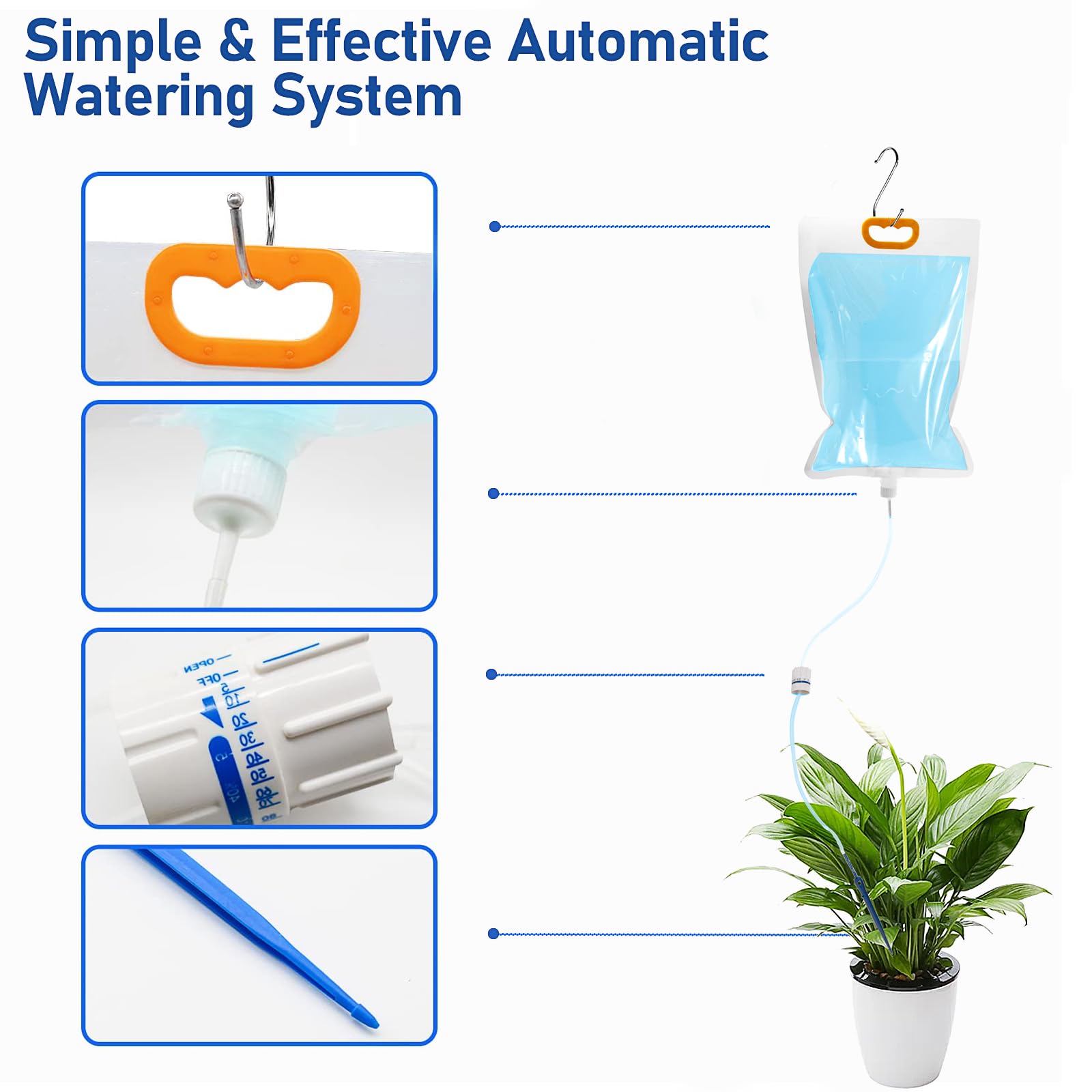 - Large Capacity: the automatic drip irrigation system has a 3.5L large water bag and an adjustable precision flow valve, the IV drip bag can work about 3 to 20 days depending on the plant's water demand, temperature, humidity and soil composition; If you are busy and away from home, you can prepare the automatic plant waterer in advance to take care of your plants and keep them stay alive all the time