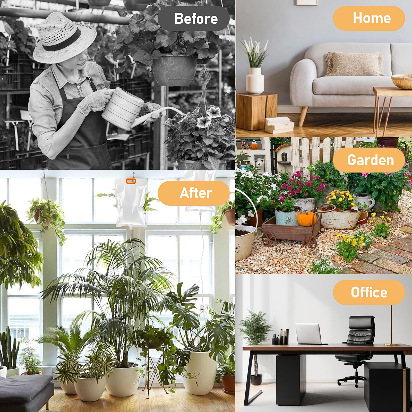 - Suitable for Indoor and Outdoor Plants: the automatic watering device is a good helper for home gardening, it can be applied for all kinds of potted plants, you can hang the water bag on the indoor plant stand, balcony railing, garden railing, these self watering devices for plants do not take up much space and will not hurt plant roots, making them nice novelty gardening gifts for family, friends and children