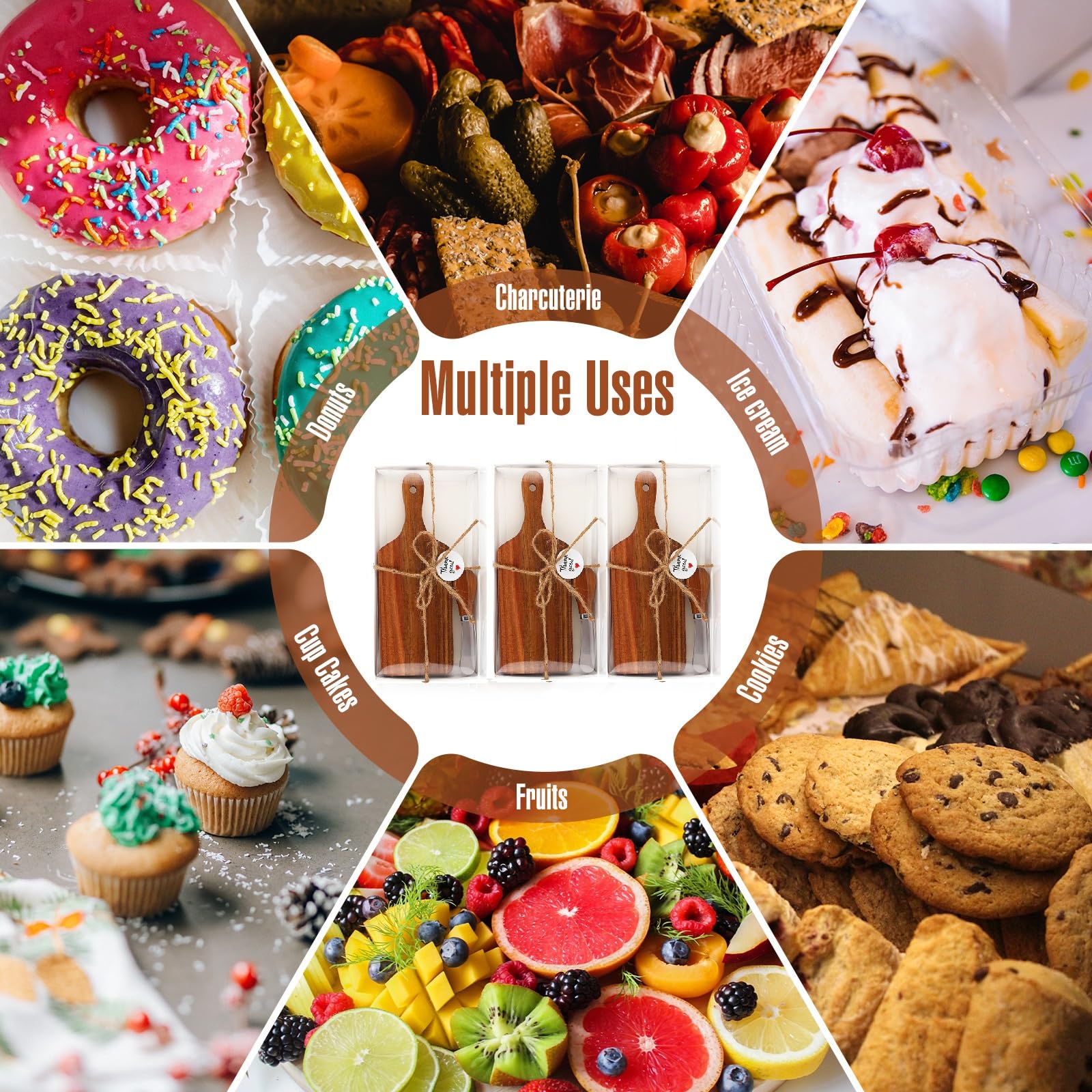 - Thoughtful Design: our chopping boards are designed with handle, adopting the color of acacia wood, which can be harmoniously matched with gift boxes, butter knives, practical and useful; The stickers are printed with the words [thank you], to express your appreciate to your guests