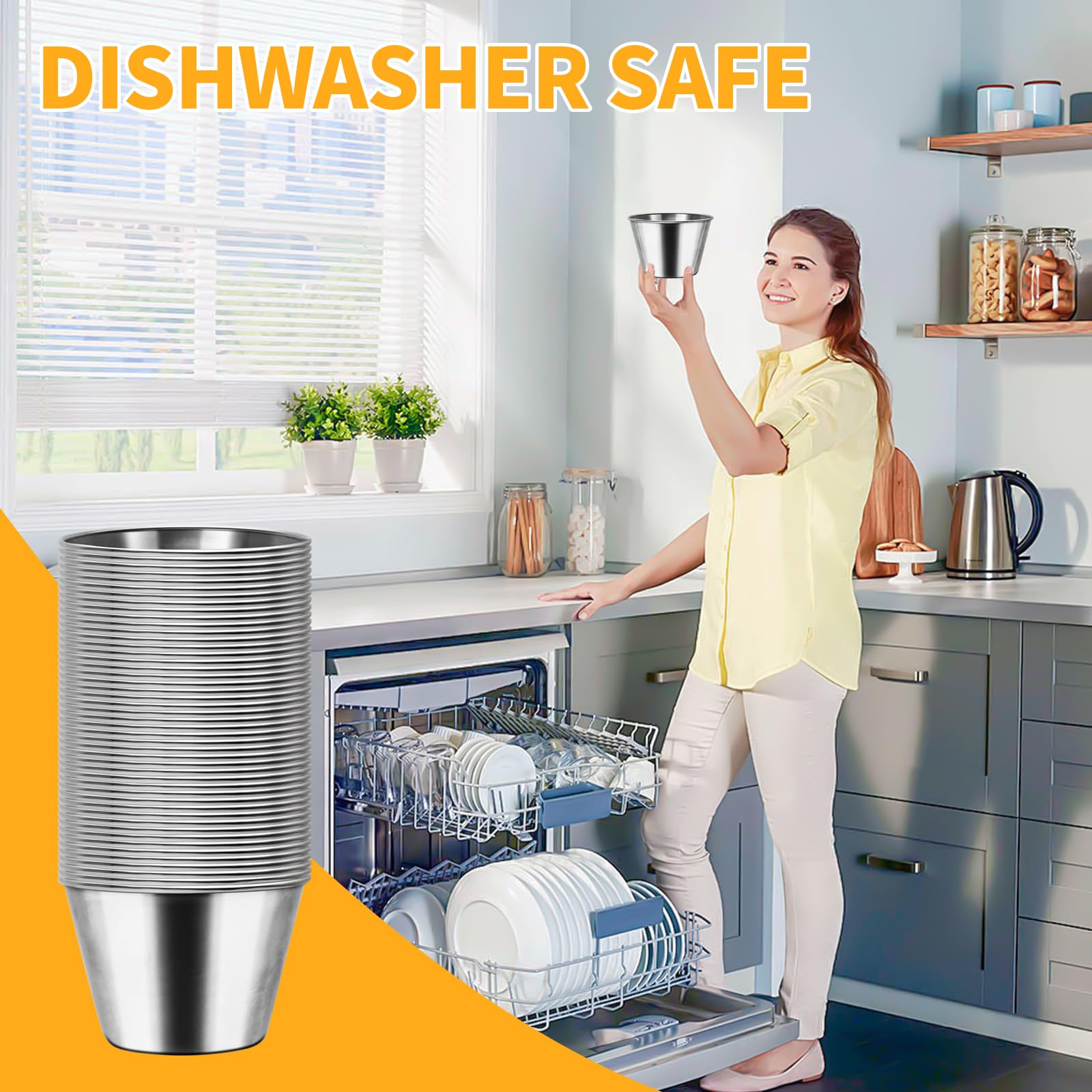 - 【Versatile for Any Scene】From home kitchens to weddings, camping trips to coffee shops, these cups adapt seamlessly. Use them for sauces, nuts, honey, butter, or even as chic votive holders. Their sleek silver finish elevates table settings while staying practical for buffet lines or outdoor adventures