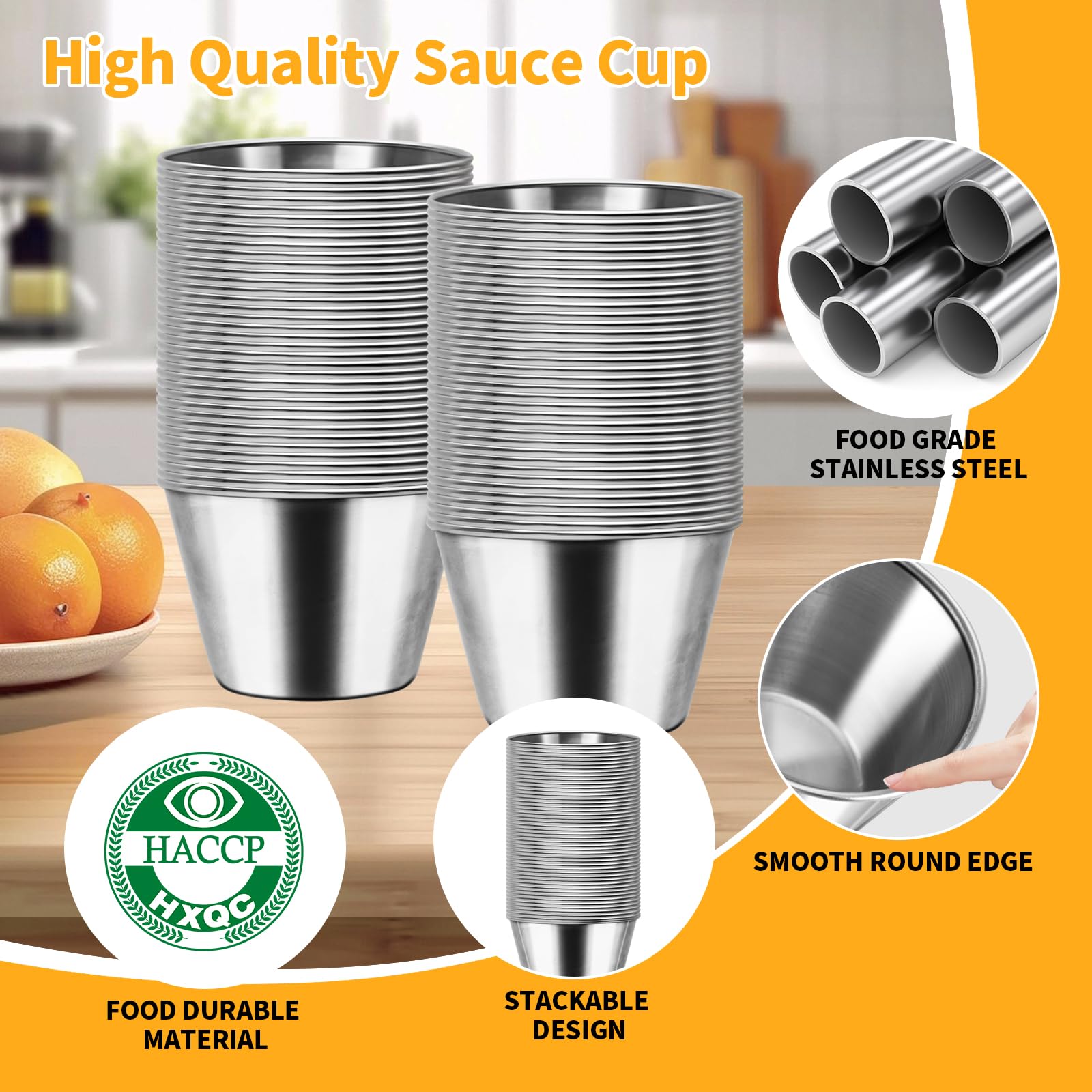 - 【120 Pack Super Value Set】Enjoy a bulk set of 120 premium stainless steel sauce cups (2.5oz each), perfect for daily use, large gatherings, or commercial needs. With ample quantity, effortlessly handle parties, restaurants, or outdoor events while maintaining backups for replacements.