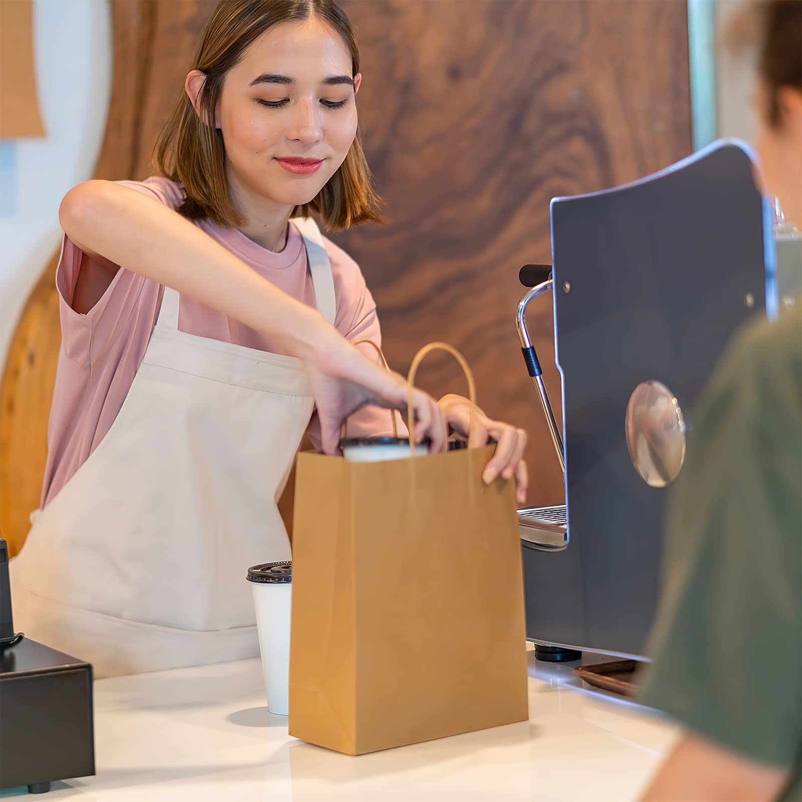 120Pcs Paper Bags with Handles Bulk, 8x4x10 Inch Kraft Paper Bags for Small Business, Shopping Bags, Retail Bags, Gift Bags, Merchandise Bags, Party Bags (Brown)