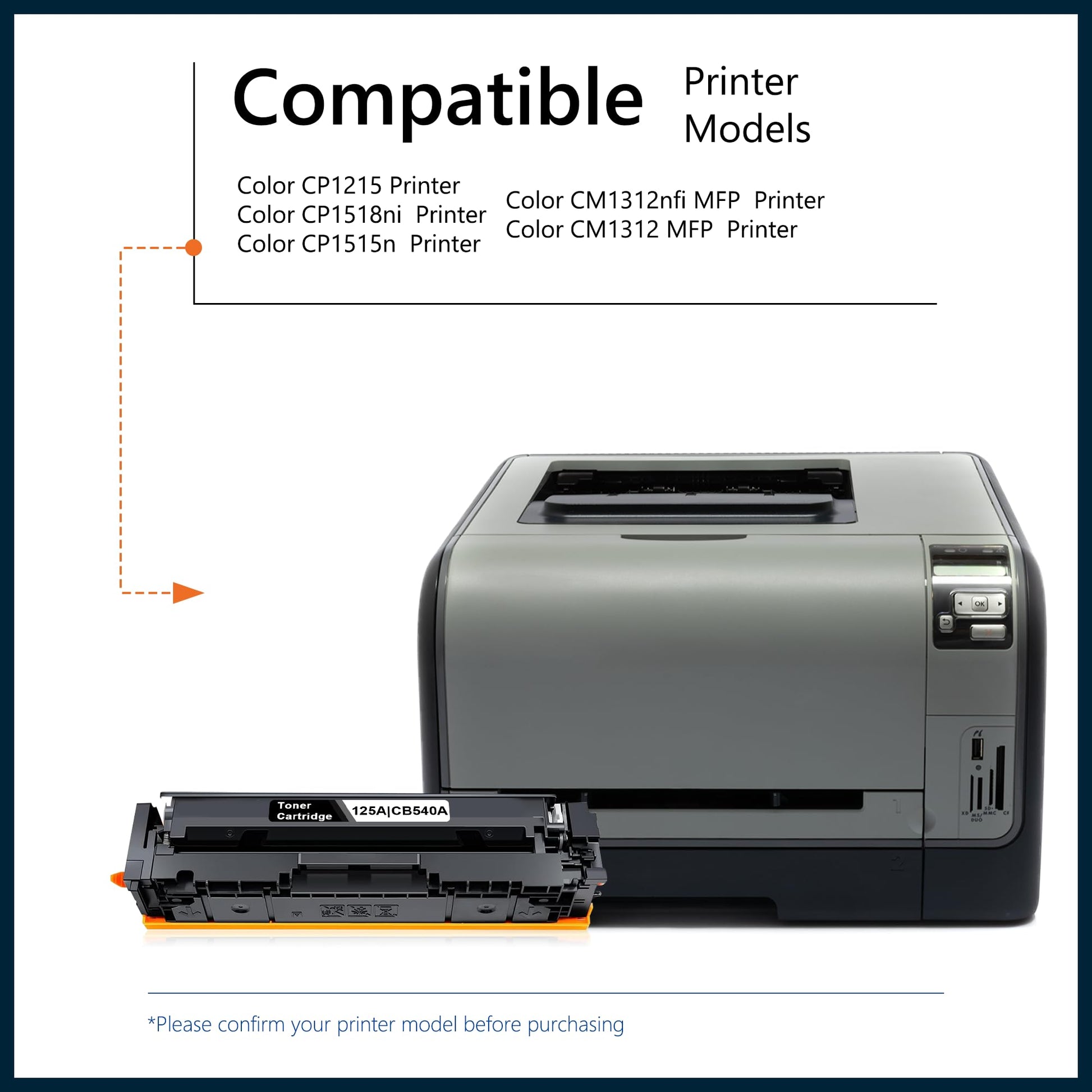 - Package Contents: Replacement for HP 125A Toner Cartridge CB540A CB541A CB542A CB543A 4 Pack(1BK/1C/1M/1Y)