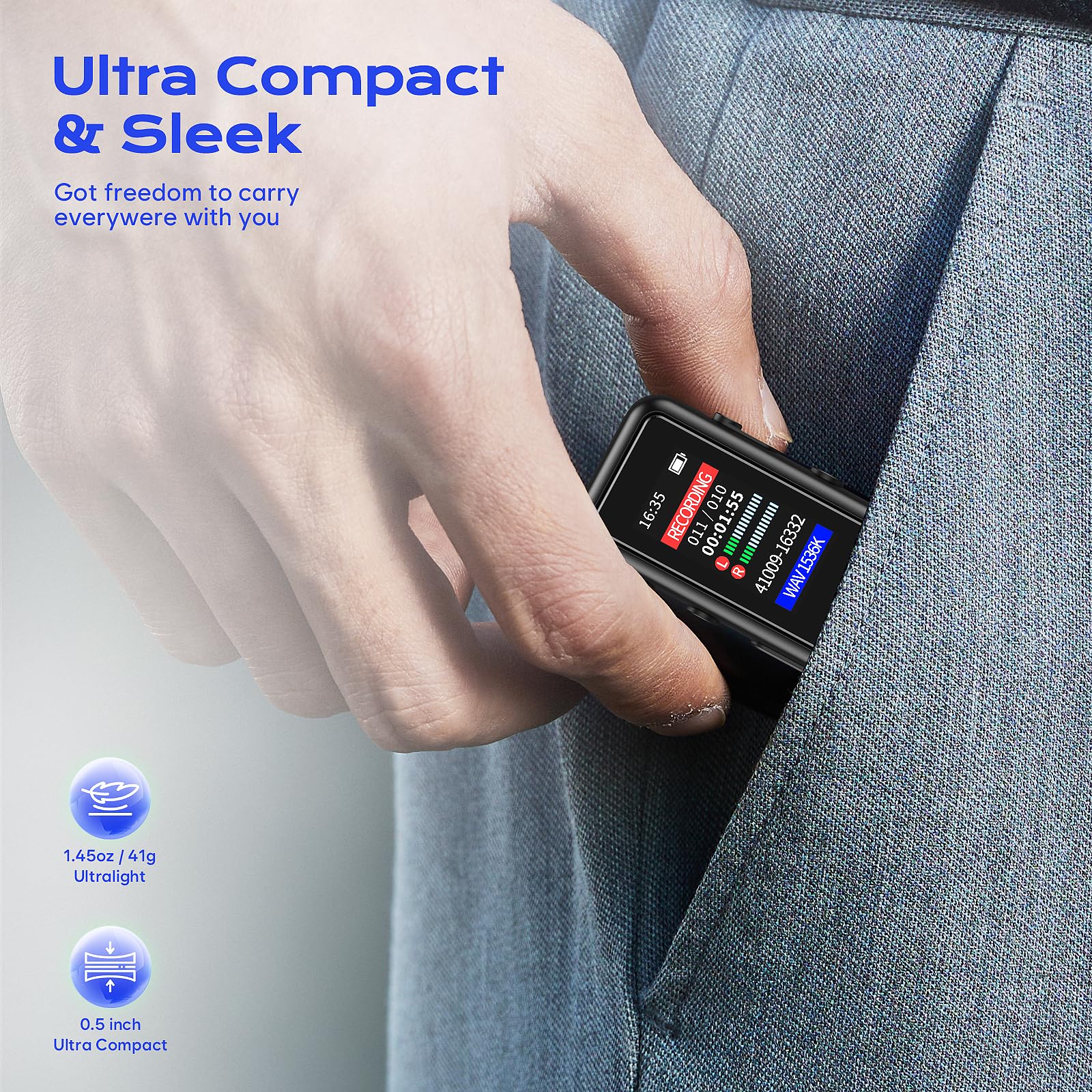 - 1536kbps High Performance Recording: ZIPCIDE voice recorder device equipped with advanced dual noise reduction microphones and supports 1536kbps HD sound recording, ensuring that every detail is recorded. Perfect for students, journalists, music lovers, audio creator and more people