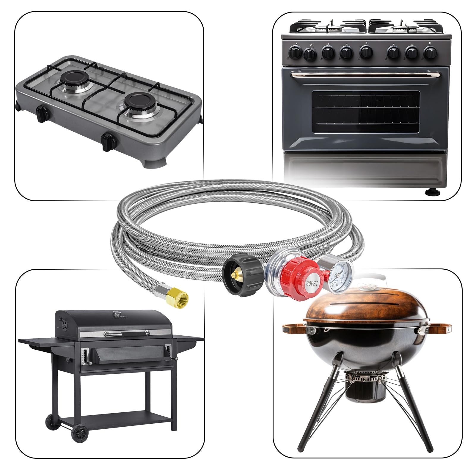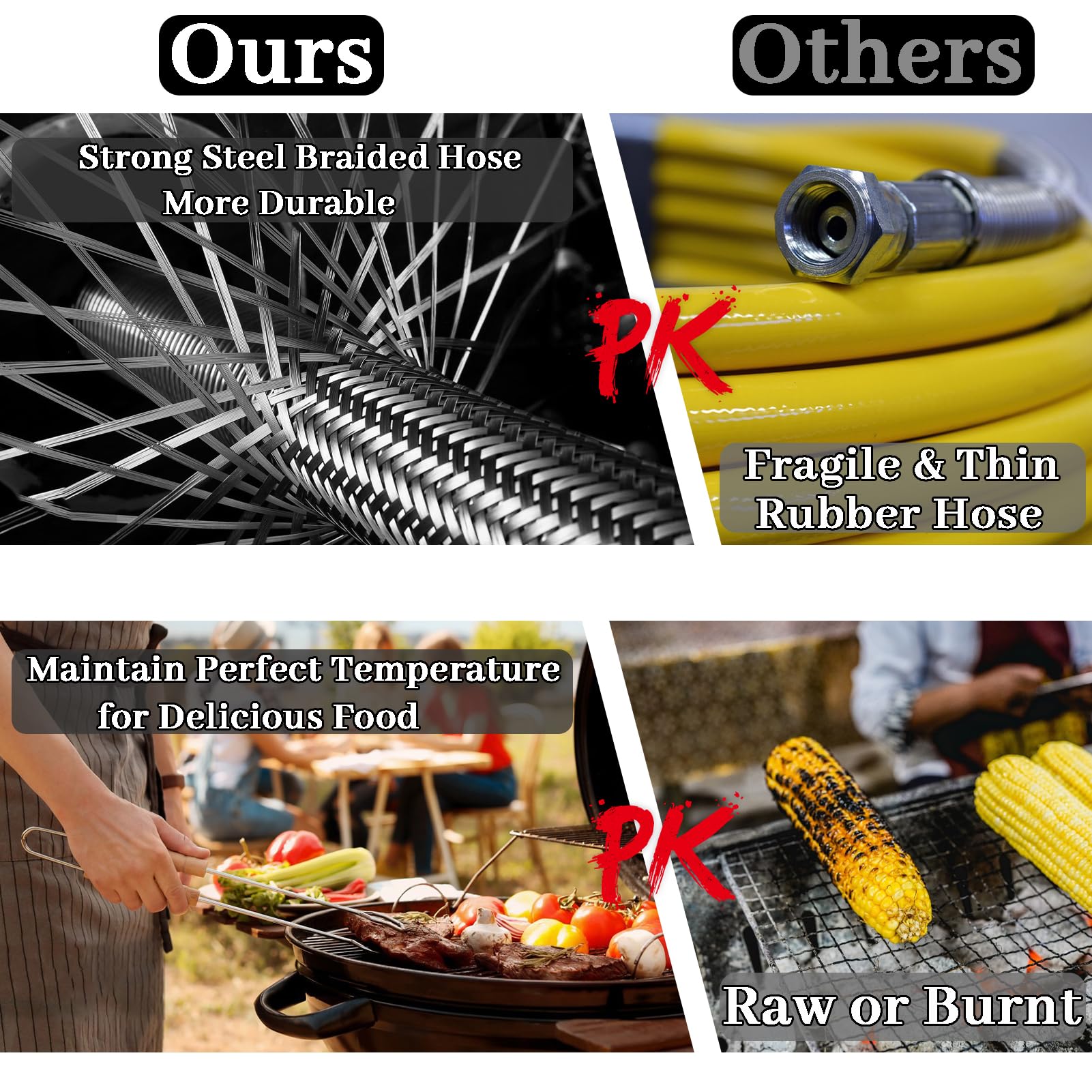 - High Quality: 12FT Propane Hose Adapter is made of durable stainless steel braided, with weather resistance, corrosion resistance, aging resistance, air tightness, heat resistance, flexibility and other characteristics, to overcome the shortcomings of ordinary rubber aging in the sun, longer lasting use