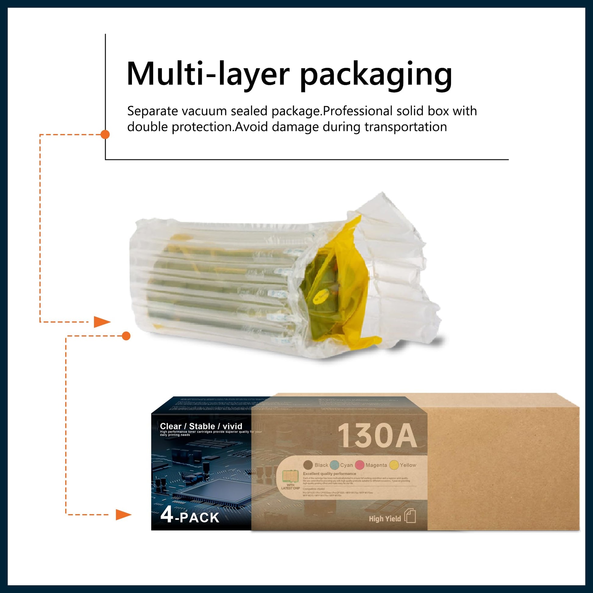 - Package Contents: Replacement for HP 130A Toner Cartridge CF350A CF351A CF352A CF353A 4 Pack(1BK/1C/1M/1Y)