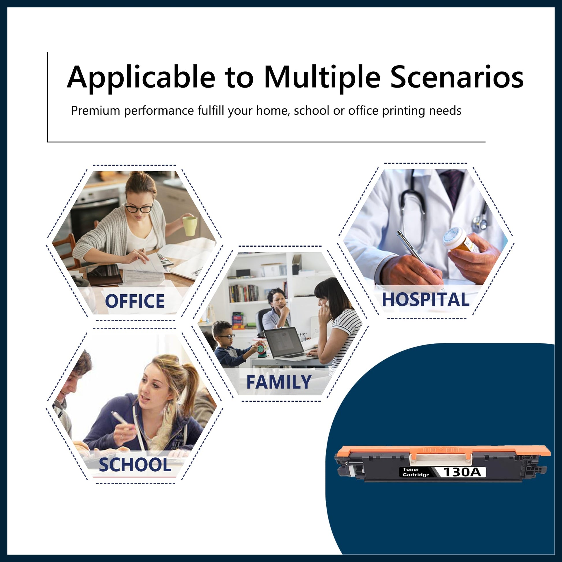 - 130A toner cartridge provides you with vibrant lasting sharp and bold printing a smooth printing experience Help to improve office productivity