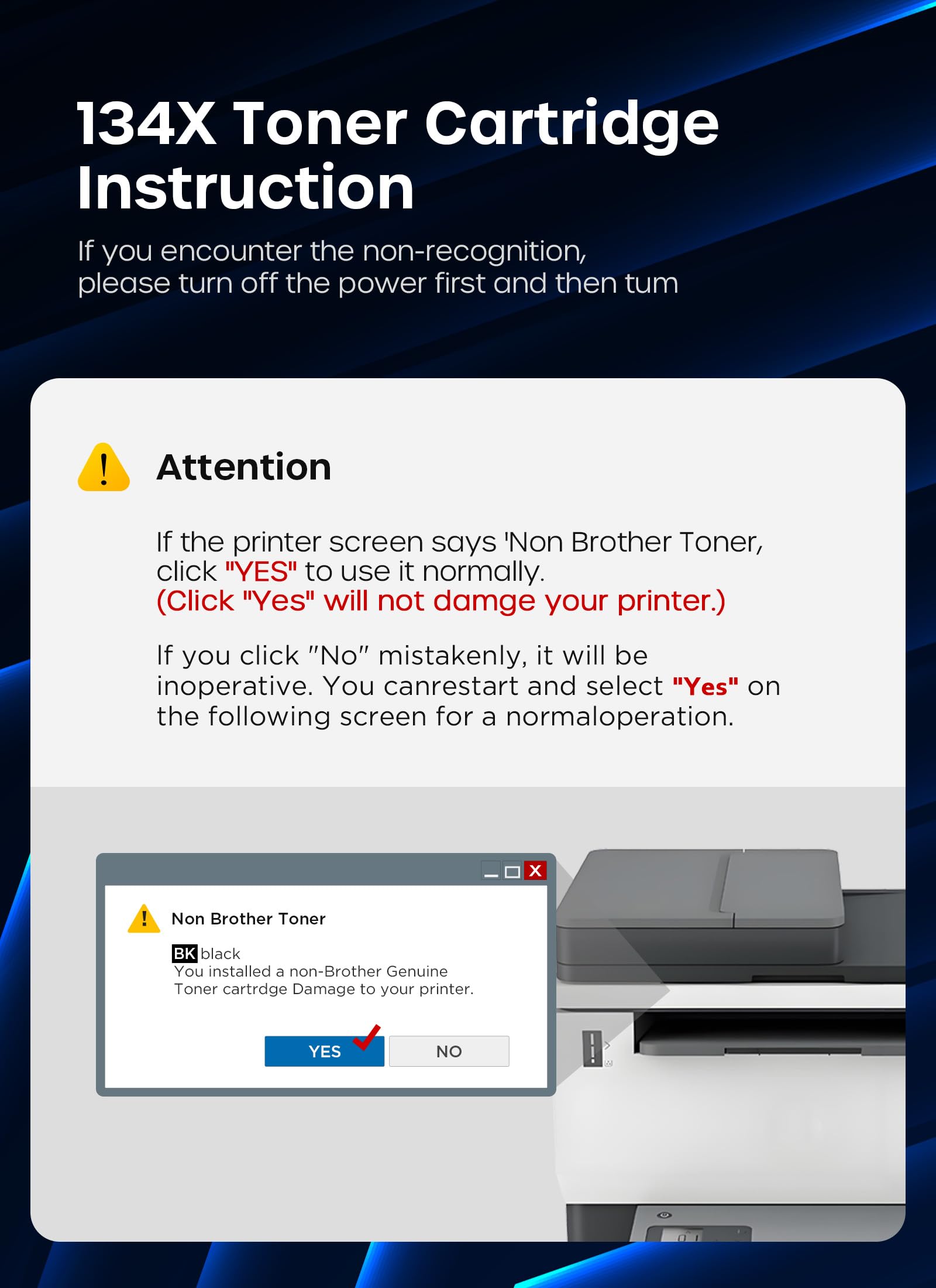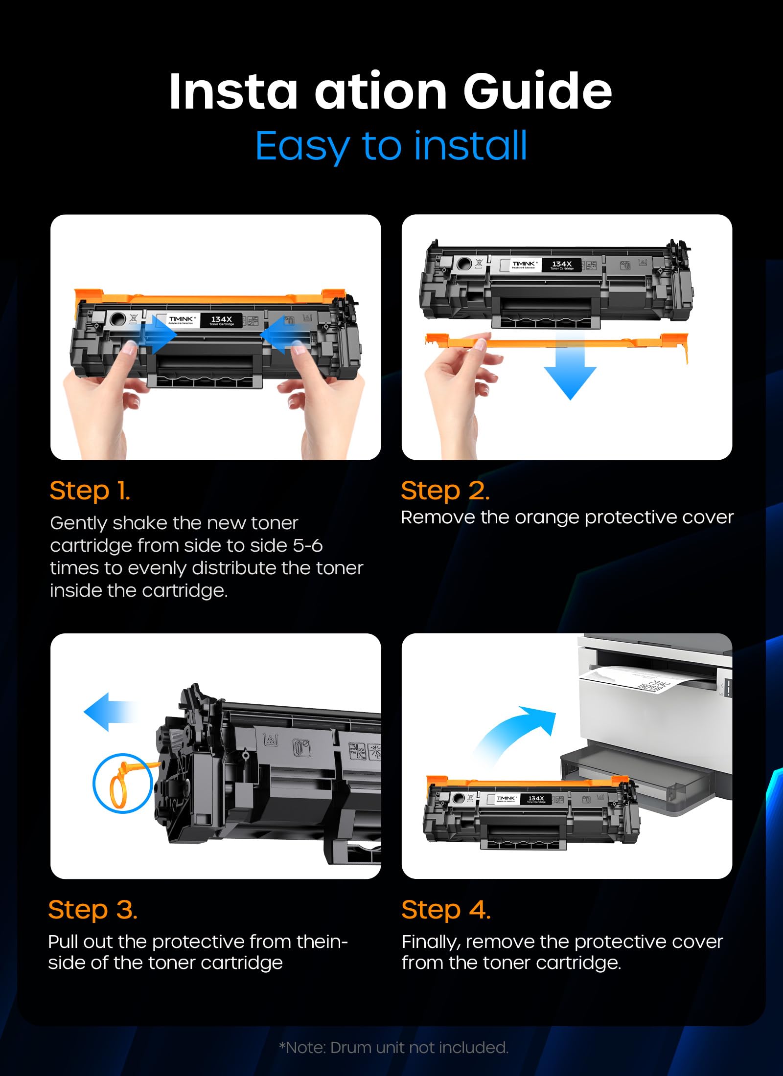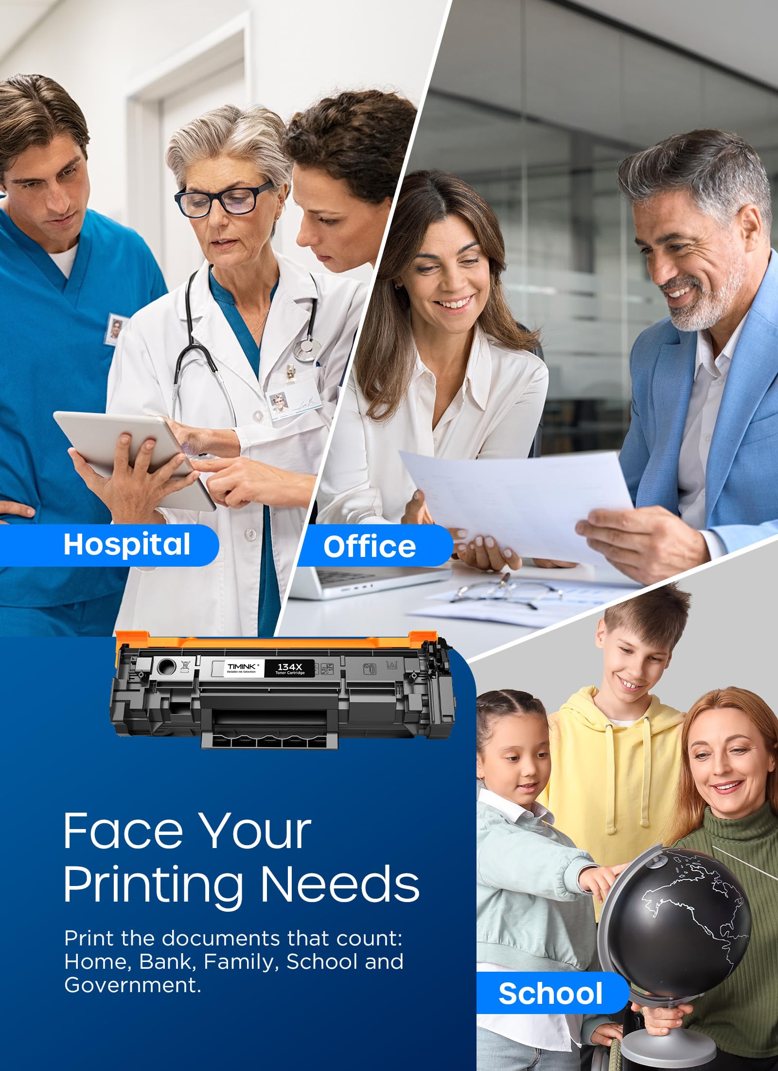- Package Included: 2 x 134X Black Toner Cartridge (with Chip), 1 x User Instruction Card
