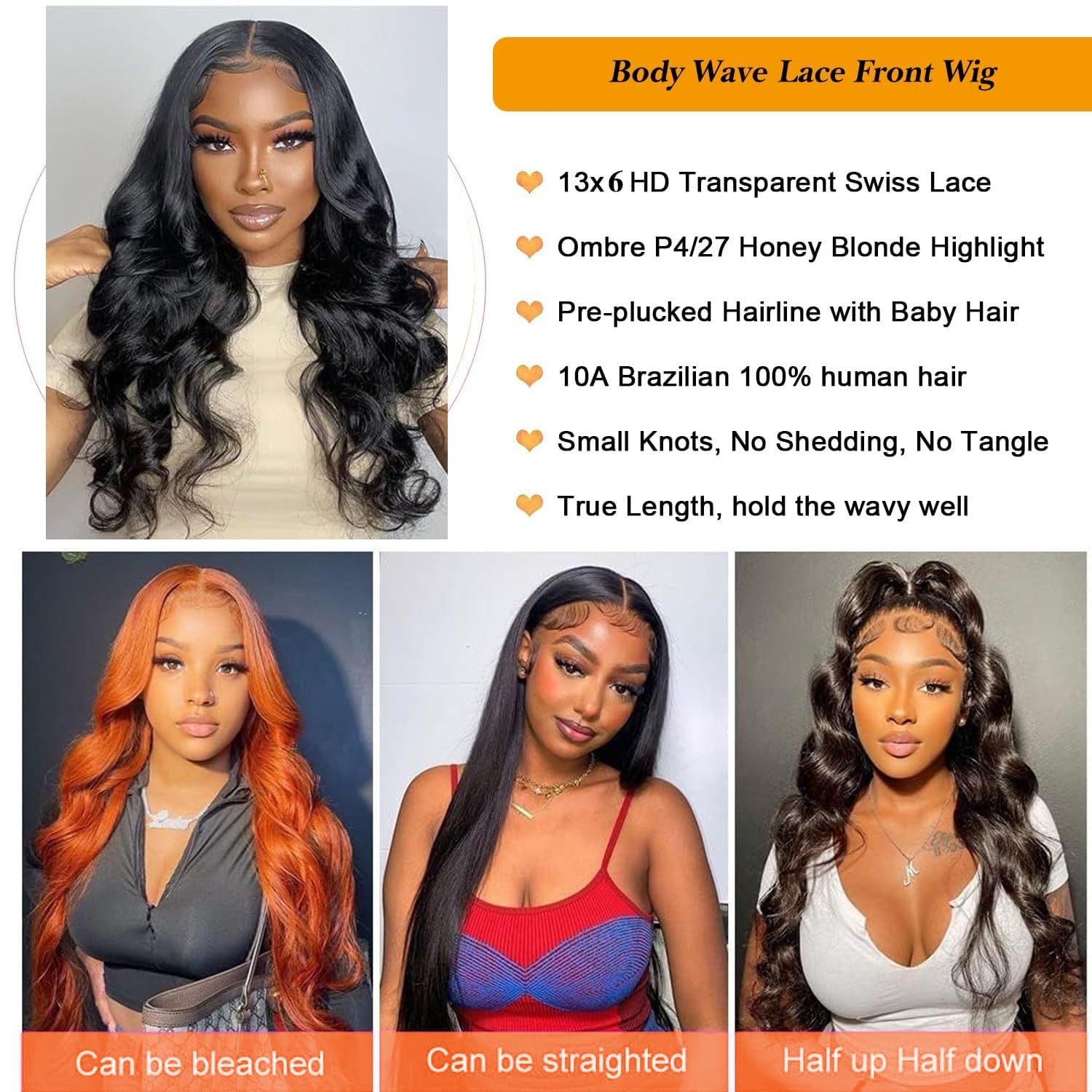 - BODY WAVE LACE FRONT HUMAN HAIR WIGS: 100% human hair body wave wig featuring natural lustre and movement, perfect for achieving glamorous, long-lasting styles