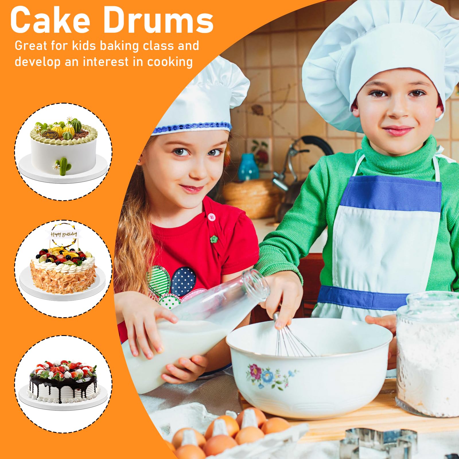 - 【Cake Making Helper】Even the cake board is circular, it can also make different shape cakes. The 12 inch cake drum features a crisp, white coloring that ensures your vibrant, colorful icings and intricate designs stand out for a stunning appearance. Seasoned bakers and novice bakers love these thick 12 in cake drums, which make their work look more professional.