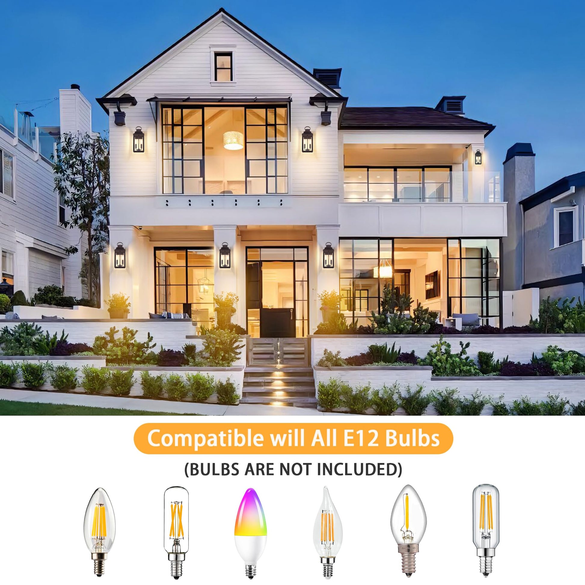 - 【Size & E12 Bulb Compatibility】The industrial lighting fixture measures 7.25'' in length and 15.25'' in height. The big wall sconce is more economical and can better meet the need for lighting for large spaces. Our exterior wall lamp base is compatible with all E12 bulbs (40W MAX). The glass shade is pre-assembled and all mounting hardware is included for an easy setup. (PLEASE NOTE: Our patio wall lantern does not include bulbs)