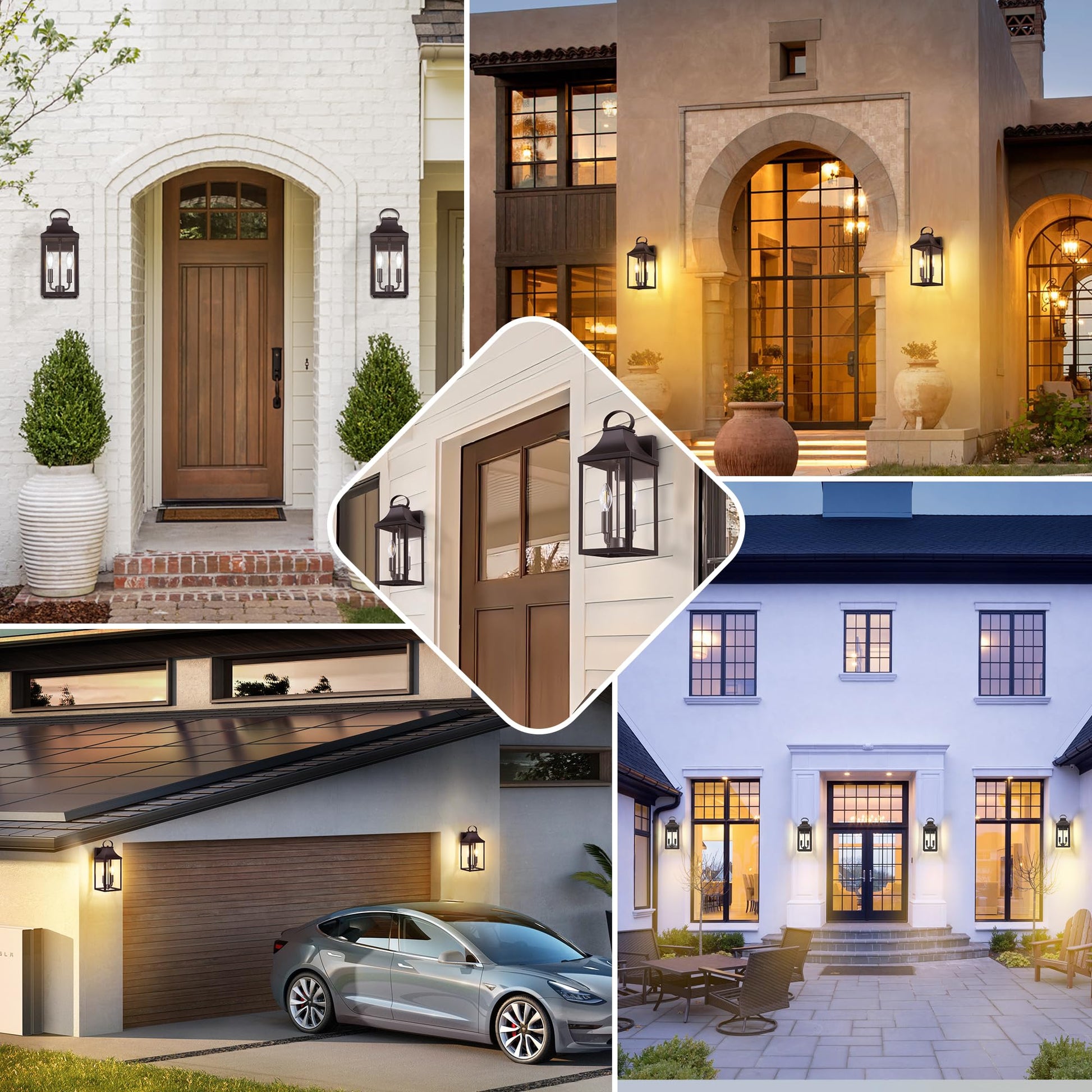 - 【Classic & Practical Design】This large porch light features 4 clear glass panes, which can emit bright light and illuminate the place at maximum, creating a beautiful lighting atmosphere outside or inside your home. The outdoor wall light is open at the bottom for easy light cleaning and bulb replacement. The clear lamp shade can showcase your bulb of choice to create a stunning light outside your home.