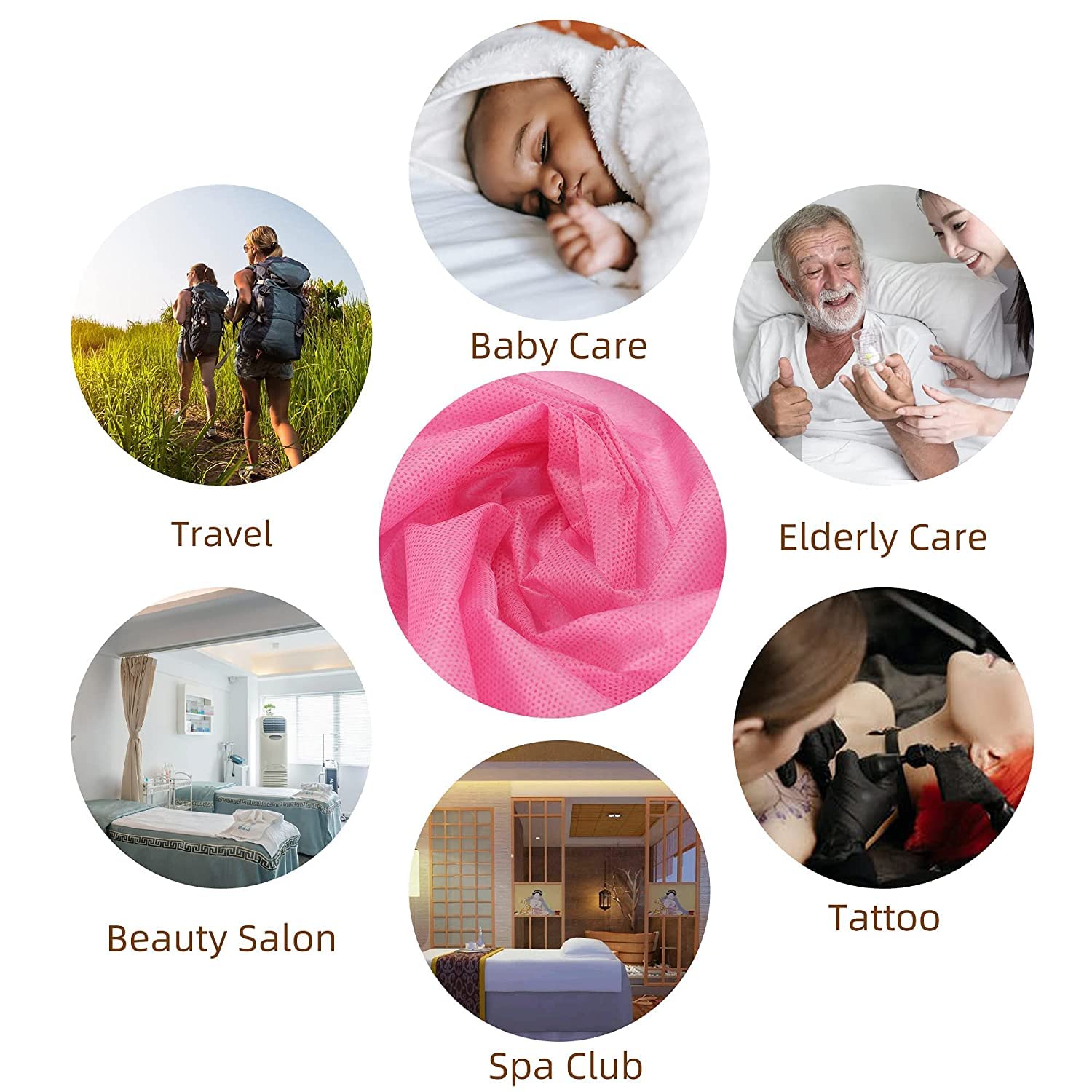 150 PCS Massage Table Sheets Disposable Non Woven SPA Bed Cover Breathable Polypropylene Fabric 31" x 70" Thin, Not Waterproof (Pink)