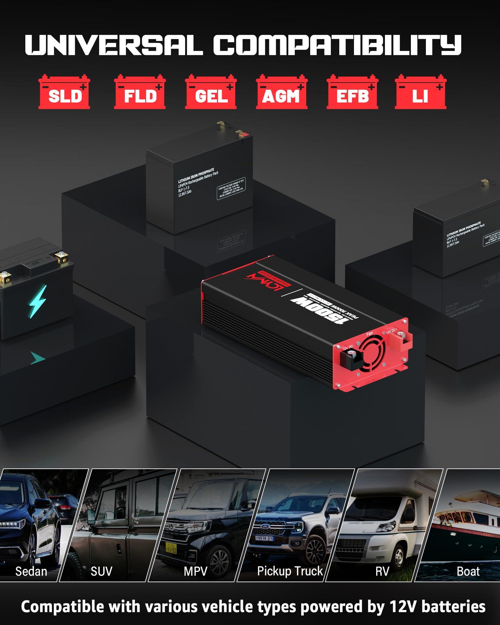 - PERFECT FOR TRAVEL, EMERGENCIES & OFF-GRID USE ---- Designed for use in cars, trucks, RVs, boats, or anywhere off-grid. During outages, simply connect to a deep-cycle battery to keep devices running.