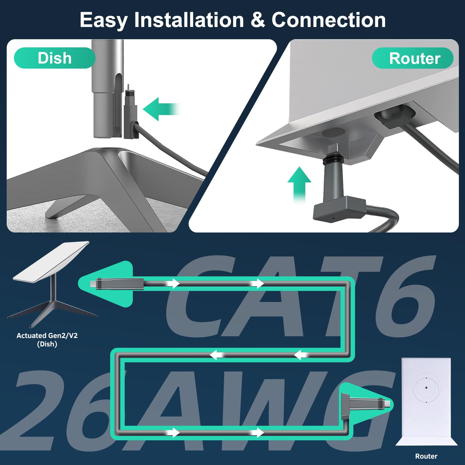 - 💎💻🏆Easy to Install: Experience hassle-free setup with our Starlink cable's plug-and-play convenience. Engineered for effortless installation, our cable ensures simple connectivity without the complexities of setup.