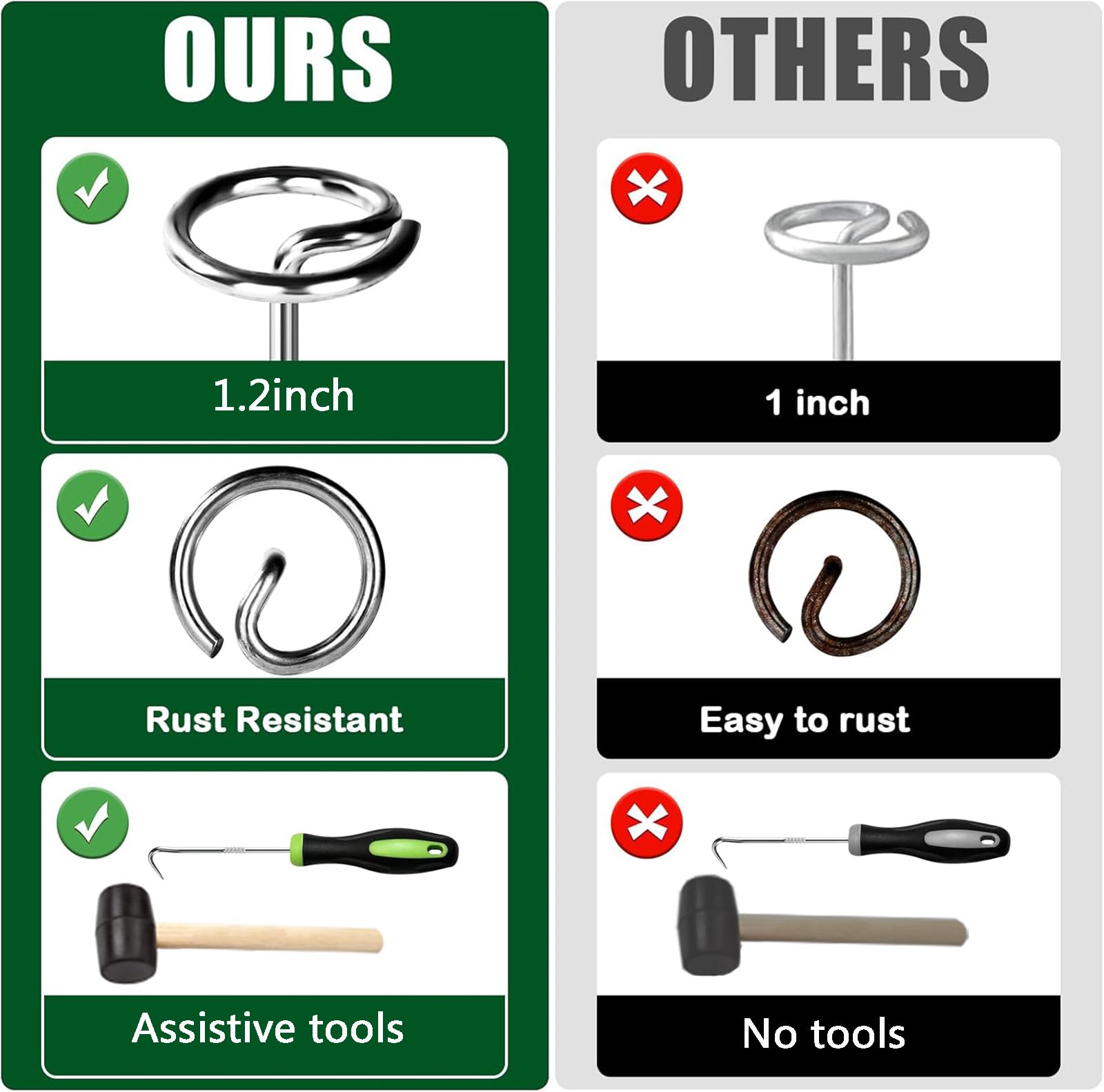 - 【LARGER G-SHARPED TOP DESIGN】Our larger G-shaped round top pins ( top diameter 1.2 inches) make easier to insert and pull out with sharp end, making the process almost effortless. Additionally, the unique designed round top provides a larger gripping area compared to other U-shaped nails.