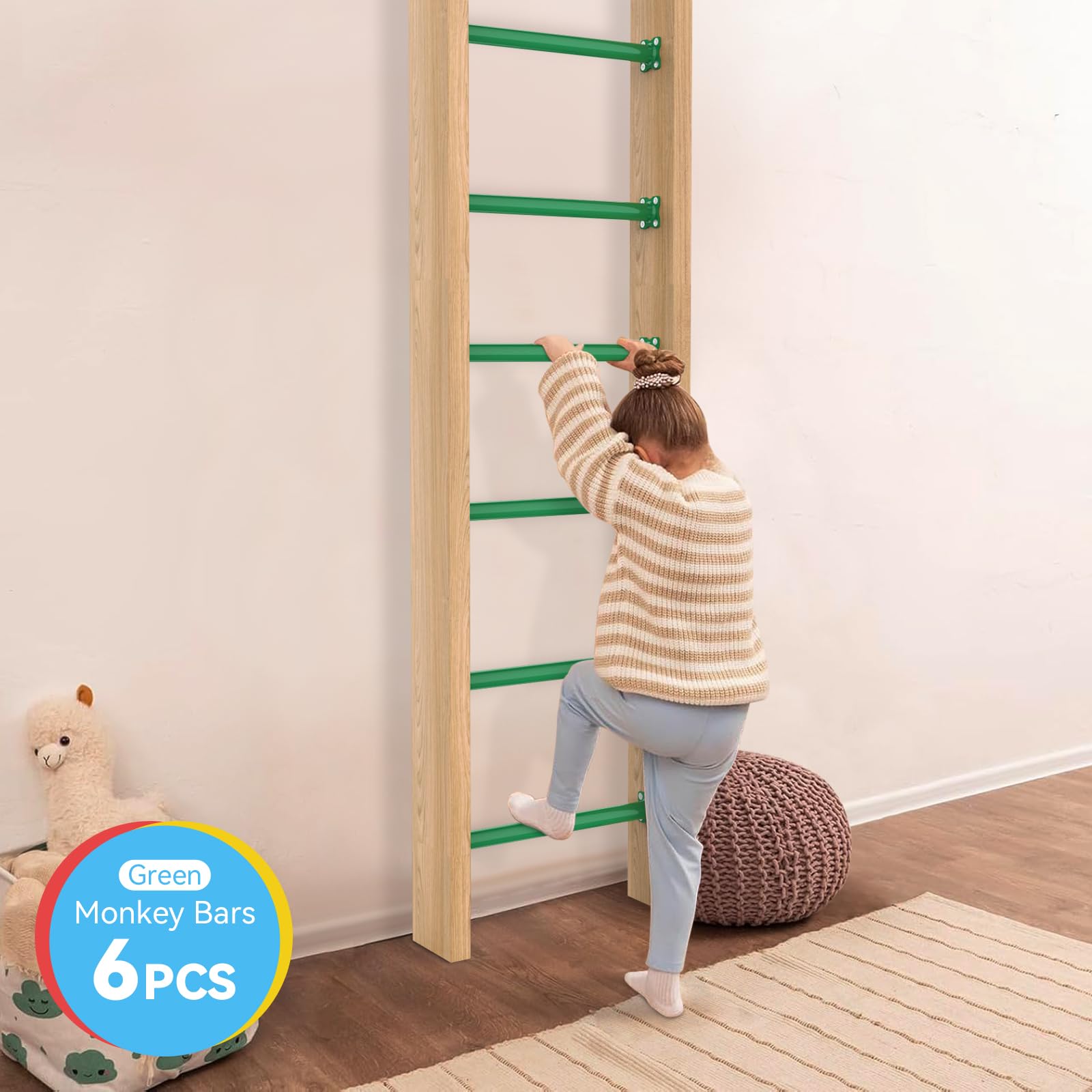 - Indoor and Outdoor Play Set: Indoor monkey bar set are coated with green powder coating with excellent rust proof performance, suitable for both indoor and outdoor environments, let your kids play in all weather, and it can meet your long term use needs.