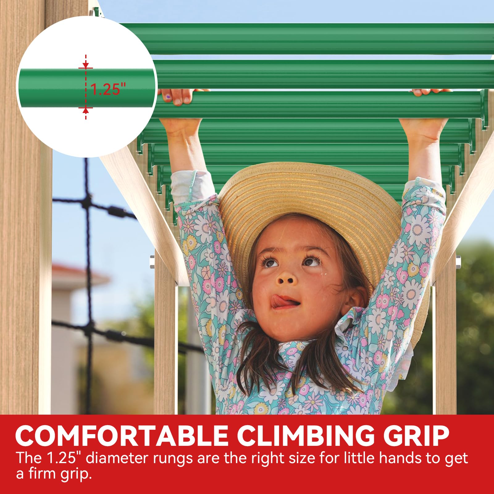 - Long Size and Comfortable Size for Hand Grip: Each monkey bar rungs is 16.5 inches in length and 1.25 inches in diameter, comfortable to hold in your hand.