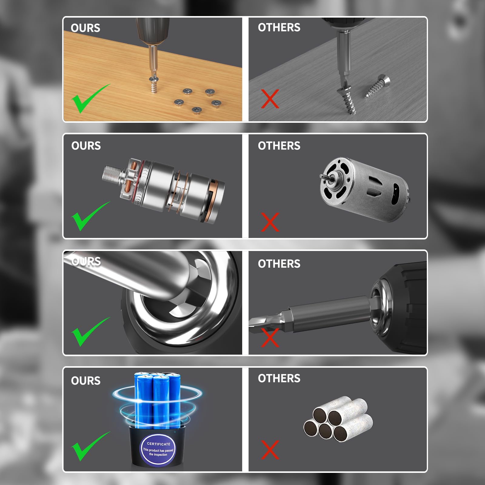 - 【Multi-Purpose Powerful Drill Set】The high quality cordless drill set is ideal for hanging pictures, assembling or repairing furniture,tightening screws and many other DIY and craft projects.