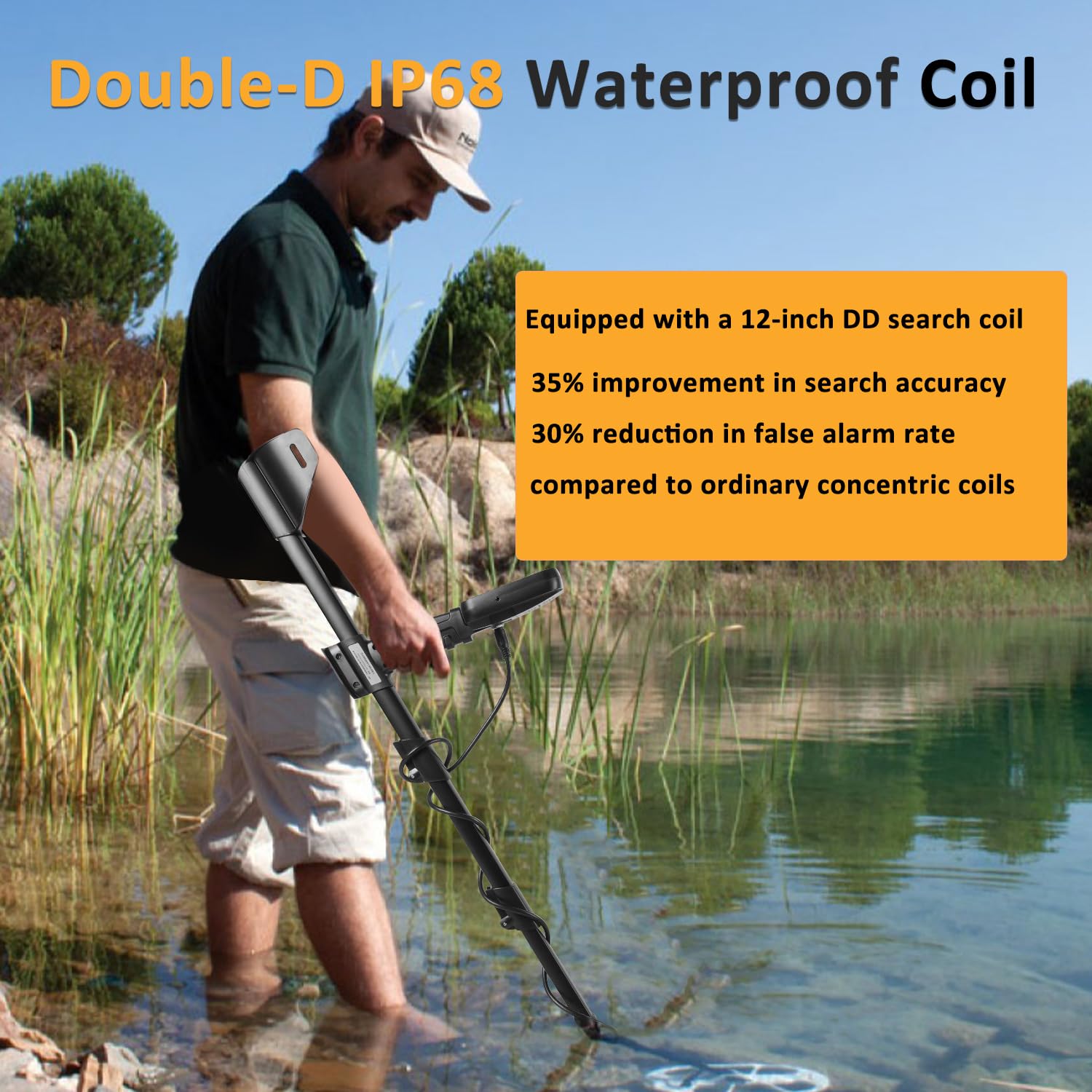 - Upgraded Double-D Coil:Deeper-penetrating electromagnetic pulses,Faster response time and Higher stability,thanks to the IP68 waterproof DD search coil of our adults metal detector.Combined with advanced ground balance technology,it can easily identify precious metals and small targets.Compared with concentric coils,DD coils plus a 35% better search accuracy and 30% lower false alarm rate.It is capable of adapting to the challenges posed by various terrains.