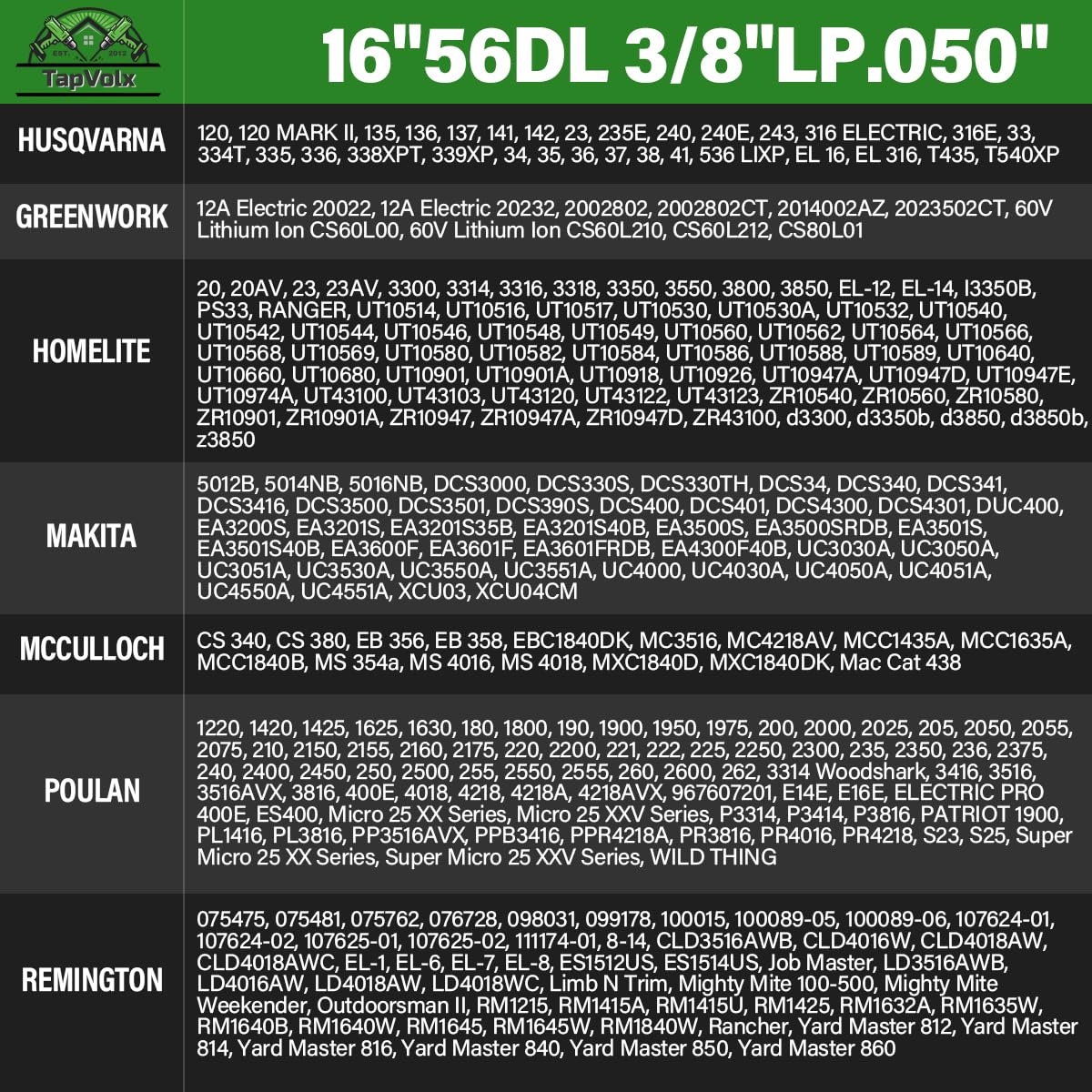 model number: 16"56DL 3/8"LP.050"