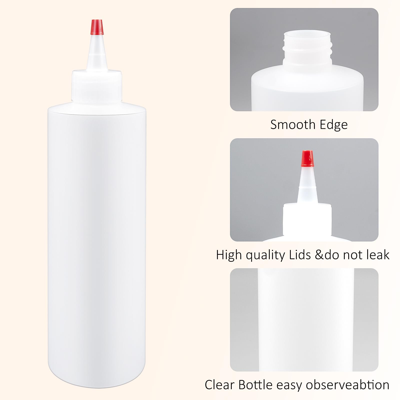 - Leak Proof Design: the plastic squeeze bottle is equipped with a red tip cap and twisted lid that feature strong sealing, not only for precise liquid dispensing, but also can stop the liquid from leaking out, simple but practical