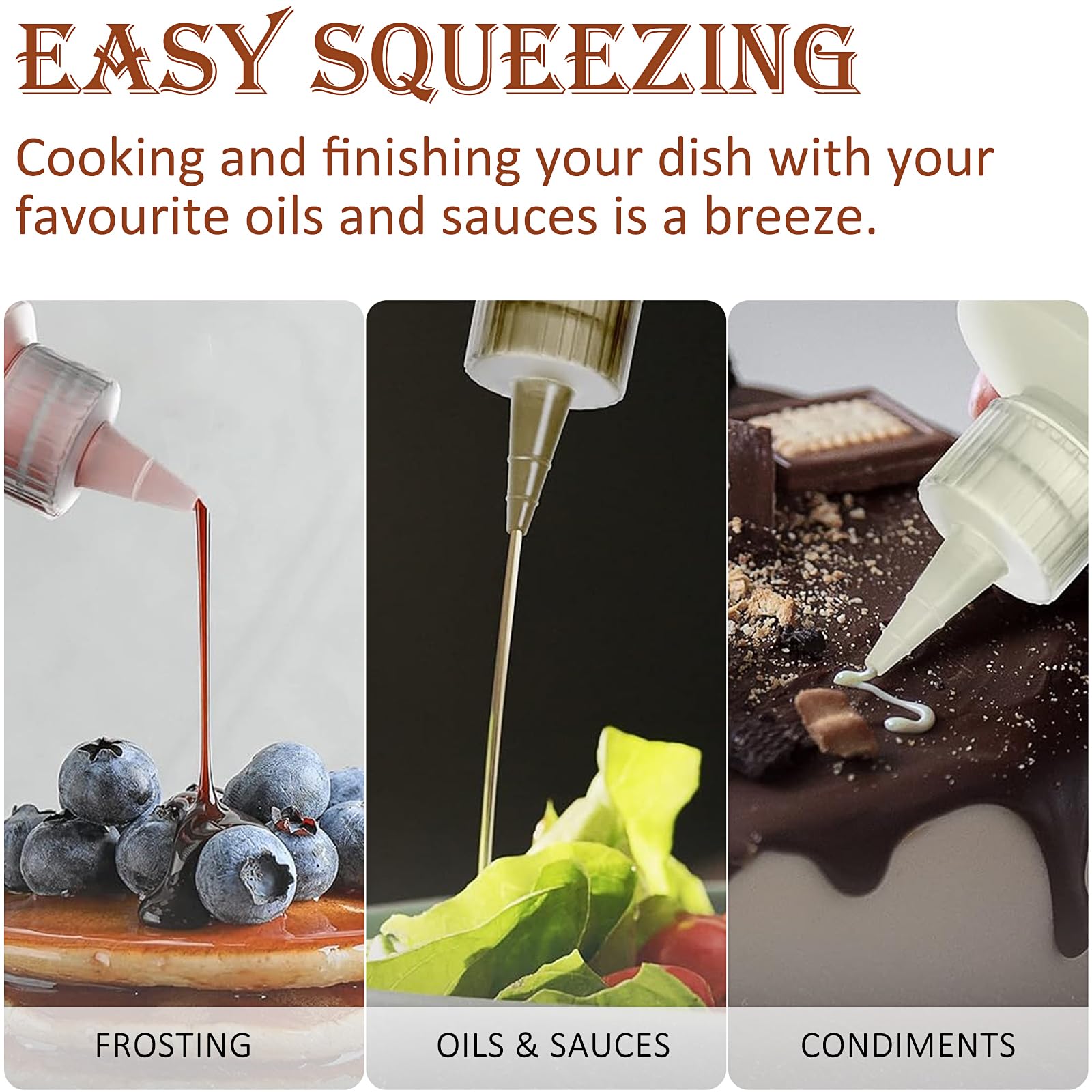 - Easy to Use: these squeeze bottles for sauces have wide mouths for you to fill or pour, with white appearances that is convenient for you to distinguish directly what's in it without opening or squeezing, and adopt soft bottle bodies, you can gently press it to use